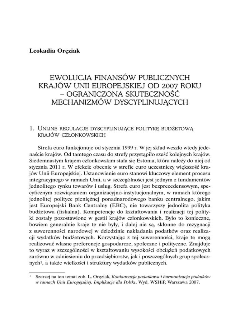 Leokadia O r ę z i a k Ewolucja finansów publicznych krajów Unii