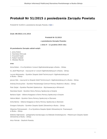 Protokół Nr 51/2015 z posiedzenia Zarządu Powiatu