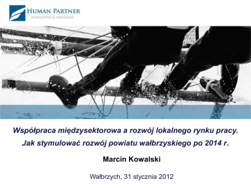 Współpraca międzysektorowa a rozwój lokalnego rynku pracy. Jak stymulować rozwój powiatu wałbrzyskiego po 2014 r. Marcin Kowalski Wałbrzych, 31 stycznia 2012 Plan wystąpienia: Rola partnerstwa/współpracy wielosektorowej - czemu służy współpraca wielosektorowa ? Współpraca wielosektorowa w kontekście nowego okresu programowania UE 2014 -2020 Zasada partnerstwa jest jedną z podwalin polityki spójności UE. Zostało to podkreślone przez podczas V Forum Kohezyjnego w Brukseli w 2010 r. Partnerstwo oznacza, że aktorzy społeczni i ekonomiczni powinni być zaangażowani w programowanie, implementację i ewaluację wszystkich aspektów polityki spójności. Według Komisji Europejskiej - trzeci sektor wraz z partnerami społecznymi (pracodawcami i związkami zawodowymi) to bardzo istotni partnerzy w procesie kształtowania polityk publiczny. Partnerzy dla instytucji europejskich Ostatnie lata potwierdzają, iż im trudniejsze wyzwania i problemy są przedmiotem dyskusji na szczeblu UE, tym częściej europejscy partnerzy społeczni traktowani są przez Komisje Europejską jako kluczowi autorzy procesu zmian, oraz jako niezbędni partnerzy instytucji europejskich w tworzeniu, a następnie wdrażaniu nowych rozwiązań. Źródło: http://www.cpsdialog.pl/tabs/index/22 , „Europejski labirynt dialogu” Edyta Doboszyńska, http://www.dialog.gov.pl/dialog_m/dialog_UE Dobrym źródłem wiedzy na temat tego, czym jest partnerstwo, jest publikacja Europejskiego Komitetu Ekonomiczno-Społecznego „Do tanga trzeba dwojga – studium rozwoju zasady partnerstwa w polityce spójności UE” (“It takes two to tango – A study on Developing the Partnership Principle in EU Cohesion Policy”). Studium oparte jest na dobrych praktykach z różnych krajów, także z Polski. Czemu służy współpraca wielosektorowa ? • Projektowanie i realizowanie określonych polityk publicznych (policies), w celu rozwiązywania kluczowych problemów np. społecznych, rynku pracy. • Tworzenie nowego prawa, w tym lokalnego. • Włączanie partnerów społeczno - gospodarczych w podejmowanie kluczowych decyzji lokalnych. Co jest wciąż wyzwaniem ? Bardzo słabe stosowanie nowoczesnych metod zarządzania publicznego (na przykład bez dbałości o wskaźniki pomiaru efektywności), bez audytowania, ewaluowania i konsultowania projektowanych działań z interesariuszami (partnerami społeczno gospodarczymi). Nowy okres programowania 2014 - 2020 Konsultacje projektu pakietu nowych rozporządzeń Komisji Europejskiej dot. nowej perspektywy finansowej 2014 - 2020 (6.10.2011). Propozycja Komisji Europejskiej zgodnie, z którą co najmniej 25 proc. pieniędzy dystrybuowanych w ramach polityki spójności w latach 2014 - 2020 ma pochodzić z EFS Na czym najbardziej zależy Komisji Europejskiej ? W rozporządzeniu KE zaproponowano tzw. cztery „cele tematyczne”: 1. Promowanie zatrudnienia i mobilności zawodowej, 2. Inwestowanie w edukację, umiejętności i uczenie się przez całe życie, 3. Promowanie włączenia społecznego i walka z ubóstwem, 4. Wzmacnianie potencjału instytucjonalnego i skuteczności administracji publicznej. Wzmocnienie partnerów społecznogospodarczych w okresie 2014 - 2020 W projekcie rozporządzenia EFS 2014 - 2020 przywiązuje się wielką wagę do udziału Partnerów społecznych w programowaniu i realizacji priorytetów oraz działań Funduszu. Dlatego też w projekcie tym wyrażono potrzebę przydzielenia dla mniej rozwiniętych regionów i państw odpowiedniej kwoty pochodzącej z zasobów EFS, która powinna być przyznana na budowanie potencjału partnerów społecznych i organizacji pozarządowych. Rozwój lokalny kierowany przez społeczność podejście zakładające rozwój lokalny okazało się rozsądnym rozwiązaniem na kolejny okres programowania. Jedynie niewielka część (około 5% i nie więcej niż 10%) Funduszy powinna być inwestowana przy zastosowaniu tego narzędzia, podczas gdy pozostałe środki powinny być programowane, wdrażane i monitorowane poprzez mobilizację podmiotów lokalnych. Istotne jest zapewnienie trwałości partnerstw lokalnych w celu zapewnienia, że zostaną one utworzone w terminie, by wdrażać Strategię Rozwoju. Współpraca terytorialna Zgodnie z propozycją KE każdy kraj ma też przedstawić Komisji w "kontrakcie partnerskim, listę kilkunastu miast, które oprócz "normalnych" funduszy strukturalnych będą mogły dostać dodatkowo 5 proc. z narodowej puli w ramach EFRR. Będą musiały w tym celu przygotować strategię zrównoważonego rozwoju (ws. transportu, środowiska, mieszkań itp.). Rozwiązania niemieckie EFS może decentralizować swoje działania, jak ma to miejsce w niemieckiej Badenii-Wirtembergii, aż do lokalnego poziomu. Ponad 1/3 budżetu jest alokowana poprzez 42 sieci podregionalne. Decydują one o wyborze projektów, a decyzje są oparte o lokalne potrzeby i strategie dotyczące m.in. wspierania i rozwoju rynku pracy. Rozwiązania austriackie Koncepcja terytorialnych paktów na rzecz zatrudnienia. Oparta jest na działaniu w ramach EFS, które kontynuuje innowacyjną inicjatywę paktu na poziomie europejskim z późnych lat dziewięćdziesiątych oraz doświadczenia IW EQUAL. Pakty austriackie są oparte o szerokie partnerstwa publicznoprywatne na poziomie lokalnym. Innowacyjne działania i metody, skupiające się na strukturach i grupach docelowych, to kluczowe elementy tych paktów. Pytania w kontekście prezentacji 1. W jaki sposób zapewnić udział Partnerów społecznogospodarczych w przygotowaniach Powiatu Wałbrzyskiego do nowego okresu programowania 20142020? 2. Jaki model współpracy wybrać (stały - incydentalny)? 3. Jak zapewnić trwałość współpracy? 4. Jaką rolę powinien mieć Powiat Wałbrzyski (inicjator, koordynator, inne role). Dziękuję Państwu za uwagę Marcin Kowalski