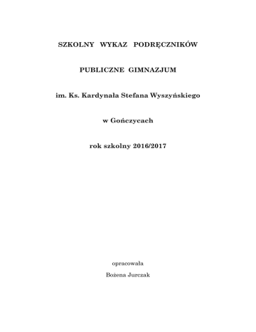 SZKOLNY WYKAZ PODRĘCZNIKÓW PUBLICZNE GIMNAZJUM im