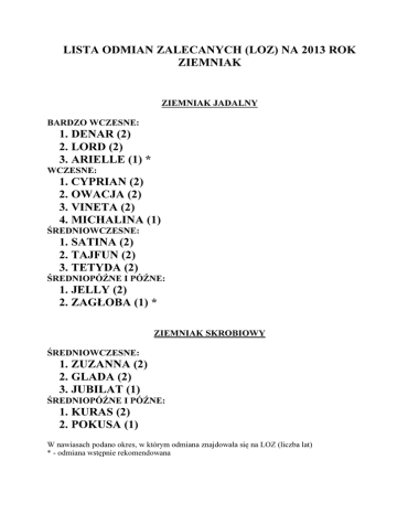 LISTA ODMIAN ZALECANYCH (LOZ) NA 2013 ROK ZIEMNIAK 1