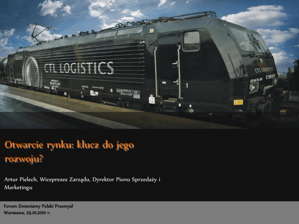 Otwarcie rynku: klucz do jego rozwoju? Artur Pielech, Wiceprezes Zarządu, Dyrektor Pionu Sprzedaży i Marketingu Forum Zmieniamy Polski Przemysł Warszawa, 25.01.2010 r. Tezy do dyskusji Po okresie względnego rozwoju konkurencji, następuje proces odwrotu od „pluralizmu na torach” Do dwóch spadła liczba obszarów rynku trudno dostępnych dla przewoźników alternatywnych Rozwój i modernizacja infrastruktury warunkiem kluczowym dla zatrzymania postępującej degradacji transportu kolejowego Rywalizacja dwóch obecnych na rynku przewoźników państwowych przestała nawet być zabawna Na rynku zawsze będzie miejsce dla przewoźników prywatnych 2 Towarowe przewozy kolejowe w Europie zanotowały w roku 2009 drastyczne załamanie Rozwój transportu kolejowego w Europie oraz w UE- Transport kolejowy ver. PKB i udział nowych 15 1995-2007 i 2009P [mld tkm] przewoźników w rynku 1995-2008, 2009 P 20 1000 15 800 10 600 5 400 0 200 -5 1994 -10 0 1996 1998 2000 2002 2004 2006 2008 2010 20 09 P 20 07 20 05 20 03 20 01 19 99 19 97 19 95 -15 -20 -25 Transport kolejowy UE-15 Transport kolejowy w Europie -30 -35 +5,6 w 2006 roku +6,0 % w 2007 (+ 2,3 w EU + EFTA) -1,7 % w 2008 roku (-2,9 % w UE +EFTA) Prognozowane pogorszenie w 2009 ( nawet o -29%) Źródło: Land Transport Research/CERN/NP./UIC, Netzwerk Privatbahnen/ LTR/EconStats/IMF 2009 Transport kolejowy UE- 15 PKB - zmiana (%) w krajach euro Udział nowych przewoźników w rynku w UE - 15 3 Mniejszy wolumen powoduje spadek przychodów, którego koleje państwowe nie są w stanie zrównoważyć Prognozowane straty w 2009 roku [mln €] VR go SBB Car CD C argo RCA PKP C argo go ZSSK Car BCar go DB S chen k er R ail -200 Treni tal ia -100 Fret S NCF 0 Rentowność przewoźników kolejowych znacznie się obniżyła; Linie kolejowe tną koszty i wstrzymuję lub ograniczają inwestycję; 1/3 wagonów oraz 20 % lokomotyw pozostaje niewykorzystanych; Kolej traci udziały w transporcie ogółem na rzecz transportu drogowego w 2009 roku; -300 -400 -500 -600 -700 Źródło: DVB Land Transport Research 4 Trudności na rynku nie pozostają bez wpływu na to jak zachowują się na nim poszczególni gracze Konsolidacja rynku: DB (D): PCC Logistics, 17,78% PCC Intermodal i PTK (PL) SNCF (F): Novatrans (F), Ermewa (F), Veolia Cargo = Francja, Eurotunnel/Europorte 2 (F/UK): Veolia Cargo (F) we Francji Strabag (A): 5,7% GySEV (A/H) Metrans (D): 50% Railtransport (CZ) CD Cargo (CZ) - ZSSK Cargo (SK) – fuzja chwilowo wstrzymana Husa Transportation Group (NL): Rent-a-Rail (D) i SRS Railservice (D) Ciągle na sprzedaż: SBB Cargo (CH), Orlen/Unipetrol (PL/CZ) oraz Montecargo (ME) Wycofanie się prywatnych przewoźników z rynku: HWB Hochwaldbahn Servicegesellschaft & TSD (D) - Ferport (I) - Ei.L.T. GmbH Eisenbahn, Logistik und Transporte (D) - RTS Rail Traction Service (CH) - fer Polska (PL) - Advenza Freight (UK) - Crossrail Benelux (B)? Źródło: DVB Land Transport Research 5 Na pierwszy rzut oka na torach nadal panuje pluralizm… Głowni przewoźnicy kolejowi w Europie Źródło: DVB Land Transport Research 6 Jednak przewoźników z całkowicie prywatnym kapitałem w Europie pozostało tylko kilku Prywatni przewoźnicy w Europie mają udział w runku mniejszy niż 7% Źródło: DVB Land Transport Research 7 W Polsce również ubyło dwóch znaczących przewoźników prywatnych; czy to koniec? Udziały w rynku poszczególnych operatorów towarowych wg pracy przewozowej [%] 2008 1) 2009 Pozostali 15% Pozostali 17% PTK Holding 3% DB 8% PCC Holding 6% CTL 6% CTL 8% PKP Cargo 70% 1 Wyniki PKP Cargo 67% za III kwartały 2008 i 2009 Źródło: Rynek Kolejowy 8 Do dwóch spadła liczba obszarów rynku trudno dostępnych dla przewoźników alternatywnych Obszary monopolu w towarowym transporcie kolejowym 1. Przewozy całopociągowe w Polsce 2. Przewozy całopociągowe za granicą zachodnią i południową 3. Przewozy całopociągowe z Ukrainy i Białorusi 4. Przewozy rozproszone 5. Przewozy z Rosji 9 Ilość projektów remontów infrastruktury PLK, choć niezbędny od lat utrudnia przewozy w Polsce Mapa linii kolejowych z zaznaczeniem najważniejszych modernizacji W 2012 roku PKP PLK planuje zmodernizować w sumie prawie 1000 km torów na modernizację w 2010 roku zostanie przeznaczone ponad 5 mld zł Do największych projektów, które rozpoczną się w 2010 zaliczyć możemy modernizację linii Warszawa-Gdańsk- Gdynia i Warszawa – Łódź, Kraków-Rzeszów, Zabrze- Katowice-Kraków Źródło: PKP PLK, Gazeta Prawna 10 Generalnie panuje w Polsce konsensus co do konieczności wzrostu nakładów i obniżenia kosztów dostępu do infrastruktury Planowane inwestycje w infrastrukturę w Polsce [mld PLN] W Polsce od wielu lat obserwuje się nierównowagę pomiędzy wydatkami na infrastrukturę drogową a kolejową 84% 87% 84% 77% 13% 16% 2008 2009 2010P 17,7 4,6 Stawki dostępu do infrastruktury [PLN 1) ] 21,8 12,3 23% 2011P Wydatki na infrastrukturę drogową Wydatki na infrastrukturę kolejową Źródło: CTL, ZEVRail Inwestycje w transport kolejowy Polska vs Niemcy [mld PLN 1) ] W latach 2008-2012 Rząd chce przeznaczyć na budowę dróg i autostrad ponad 121 mld PLN W tym samym okresie na infrastrukturę kolejową zostanie w sumie przeznaczone ponad 5 razy mniej środków 16% Porównanie wydatków na inwestycje i stawek dostępu Polska Niemcy 1) Kurs Euro 4,5 PLN 11 Koszt infrastruktury w Polsce jest jednym z najwyższych w Europie Stawki dostępu do infrastruktury [2009, PLN/pockm] 21,84 Średnia stawka dostępu do infrastruktury w Polsce należy do jednych z najwyższych w Europie. 17,42 Dla porównania w Niemczech stawka ta wynosi o połowę mniej. 12,25 Średnia stawka w Unii plasuje się na poziomie 17,5 PLN Utrzymywanie wysokich stawek prowadzi do spadku przewozów towarowych i przesunięcia wolumenów w kierunku transportu drogowego średnia stawka w UE 1) 2) DB Netz1) (Niemcy) PKP PLK2) (Polska) Kurs walutowy – PLN/EUR 4,50 Średnia stawka dostępu