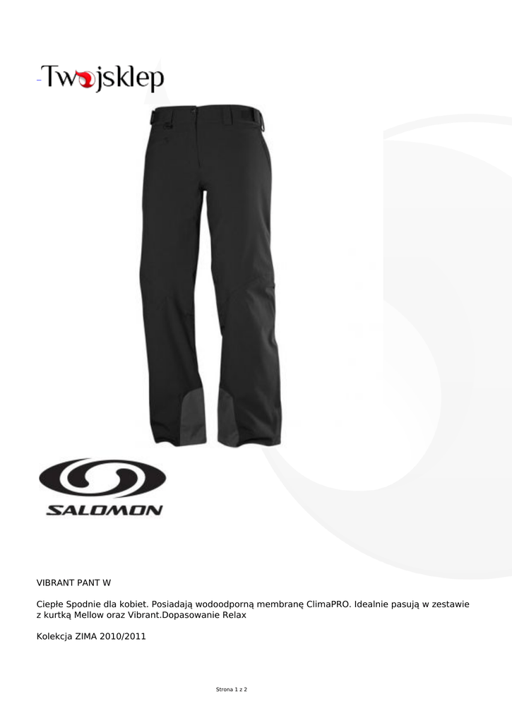 VIBRANT PANT W Ciepłe Spodnie dla kobiet. Posiadają wodoodporną membranę ClimaPRO. Idealnie pasują w zestawie z kurtką Mellow oraz Vibrant.Dopasowanie Relax Kolekcja ZIMA 2010/2011 Strona 1 z 2 Strona 2 z 2