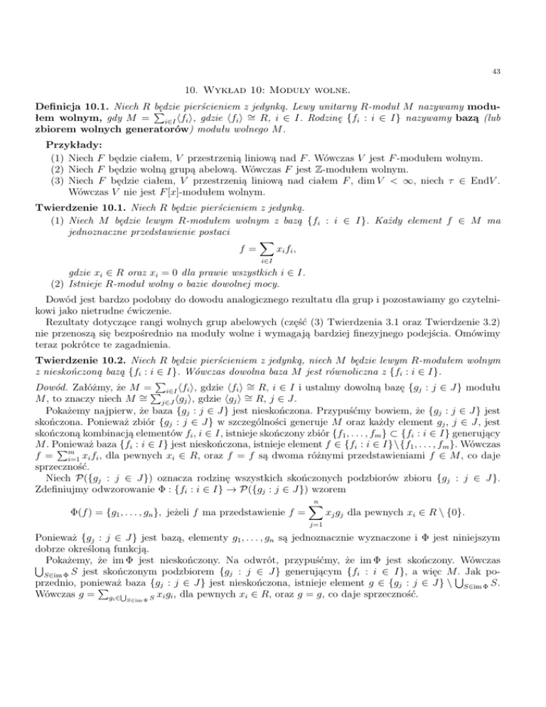 10. Wykład 10: Moduły wolne. Definicja 10.1. Niech R będzie