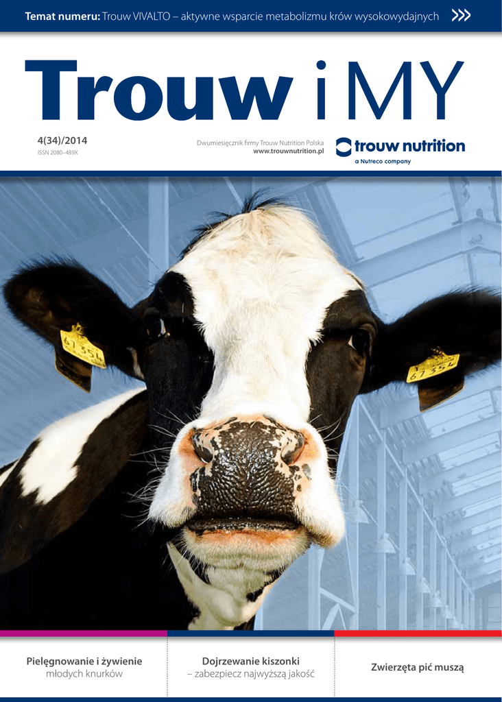 Temat numeru: Trouw VIVALTO – aktywne wsparcie metabolizmu krów wysokowydajnych 4(34)/2014 ISSN 2080–489X Pielęgnowanie i żywienie młodych knurków >>> Dwumiesięcznik firmy Trouw Nutrition Polska www.trouwnutrition.pl Dojrzewanie kiszonki – zabezpiecz najwyższą jakość Zwierzęta pić muszą Lidermix z unikalną formułą Trouw AO-mix ne nagro ięż dy Pie n Wskazany przy hodowli trzody, bydła i drobiu za wp zapewnia: zwiększenie odporności, płodności i witalności skuteczne działanie antyoksydacyjne ochronę przed stresem oksydacyjnym www.trouw.pl dy W ięc er ej na w w w.lid ! mi x.p l JA PROMOC is a n e k o Lidermix Trouw AO-mix z optymalną dawką naturalnych polifenoli. Naturalne polifenole zawarte w Trouw AO-mix nie tylko całkowicie i skutecznie zwalczają wolne rodniki u zwierząt, ale także chronią zdrowie. Potwierdzona skuteczność działania mieszanki wynika z jej bardzo wysokiej przyswajalności przez każdą komórkę organizmu zwierzęcego. bydło Dwumiesięcznik „Trouw i MY” 4(34)/2014 Drodzy Czytelnicy, oddajemy w Państwa ręce kolejny numer „Trouw i My”, którego tematyka w dużej mierze poświęcona jest prawidłowemu żywieniu krów Temat numeru mlecznych. Bydło Trouw VIVALTO – aktywne wsparcie metabolizmu krów wysokowydajnych dr Beata Skiba Dojrzewanie kiszonki – zabezpiecz najwyższą jakość dr inż. Krzysztof Białoń Z myślą o prawidłowym zdrowiu krów, i o wysokiej ich wydajności mlecznej, firma s. 4 Trouw Nutrition opracowała innowacyjny dodatek Trouw Vivalto - unikalne połączenie s. 8 chronionych witamin z grupy B. Szczegółowe informacje na ten temat znajdziecie Państwo na Letnie zapalenie wymienia mgr inż. Izabela Kozłowska s. 12 kolejnych stronach biuletynu. Zapraszam do interesującej lektury. Reportaż Zwierzęta pić muszą AdAgri Sp. z o.o. s. 14 dr Jolanta Gdala Trzoda chlewna Pielęgnowanie i żywienie młodych knurków prof. dr hab. Bogdan Szostak s. 16 Drób Choroby wirusowe u drobiu mgr inż. Izabela Kozłowska s. 18 Redaktor naczelna: dr Jolanta Gdala Redaktorzy naukowi: dr inż. Krzysztof Białoń, mgr inż. Izabela Kozłowska, prof. dr hab. Bogdan Szostak Arion Psy nad miarę puszyste Adam Janowski s. 22 Opracowanie: AdAgri Sp. z o.o. ul. Fabryczna 14 D, 53–609 Wrocław www.adagri.com s. 23 Nakład: 10 000 egzemplarzy Po godzinach Krzyżówka Zamów bezpłatną prenumeratę! Wydawca: Trouw Nutrition Polska Sp. z o.o. ul. Chrzanowska 21/25, 05–825 Grodzisk Mazowiecki telefon: +48 22 755 03 00, fax: +48 22 755 03 72, www.trouwnutrition.pl Rozwiąż krzyżówkę i wygraj nagrody! Nagrodą za prawidłowe rozwiązanie krzyżówki są gadżety Trouw Nutrition Polska. zadzwoń: 71 792 06 90 napisz: [email protected] Szczegóły – s. 23 4(34)/2014 3 Trouw VIVALTO – aktywne wsparcie metabolizmu krów wysokowydajnych W nowoczesnym chowie krów mlecznych wysoka dostępność i wykorzystanie witamin są kluczowym czynnikiem dla optymalnej produkcji mleka. Niestety, w związku z bardzo wysokim stopniem rozkładu witamin B w żwaczu powszechnie stosowane suplementy witaminowe są mało efektywne, szczególnie w przypadku krów intensywnie produkujących mleko i intensywnie żywionych, z ryzykiem stanów kwasicowych. Dlatego w trosce o status zdrowotny i większą wydajność krów mlecznych, zwłaszcza w okresie wczesnej laktacji, firma Trouw Nutrition opracowała najnowszej generacji połączenie wyselekcjonowanych, chronionych witamin z grupy B o nazwie Trouw Vivalto. Trouw Vivalto to unikalna mieszanka niezbędnych kofaktorów (witamin z grupy B), wspomagających pracę wątroby i lepsze wykorzystanie składników odżywczych dawki pokarmowej. To mieszanka, która zapewnia odpowiednie wsparcie procesów metabolicznych w okresie wczesnej laktacji. ...................................................................................................... dr Beata Skiba Trouw Nutrition Polska Witaminy z grupy B – kluczowy czynnik zwiększonej produkcyjności krów We współczesnej hodowli bydła mlecznego znacząco wzrosła produkcyjność krów mlecznych. Jednym z najważniejszych czynników wpływających praktycznie na wszystkie procesy fizjologiczne odpowiedzialne za zwiększoną produktywność są witaminy z grupy B. Odgrywają one bardzo ważną rolę jako kofaktory w enzymatycznych procesach rozkładu tłuszczów, węglowodanów oraz aminokwasów w wątrobie. I chociaż mikroorganizmy żwaczowe są w stanie syntetyzować wszystkie witaminy z grupy B, to produkcja ta jest niewystarczająca do pokrycia potrzeb wysokowydajnych krów. Należy pamiętać, że witaminy B pochodzące z pasz są bardzo intensywnie rozkładane w żwaczu w procesie fermentacji. W wyniku tego procesu przepływ wielu witamin B do jelita cienkiego i ich absorpcja są bardzo niskie. Oznacza to, że duża część witamin B traci swoje właściwości kofaktorów, zanim dotrze do wątroby. Problemy zdrowotne w okresie wczesnej laktacji Działanie Trouw Vivalto Kliniczne niedobory witamin Dostarcza optymalną dawkę witamin Niewystarczające wchłanianie witamin z grupy B Zapewnia maksymalne wchłanianie witamin B Zakłócony metabolizm Wspomaga metabolizm glukozy, aminokwasów i tłuszczów Obciążona wątroba Chroni i wspomaga pracę wątroby Obniżona produkcyjność mleka Zwiększa produkcyjność dobrej jakości mleka Osłabienie organizmu Wzmacnia i kompleksowo odżywia organizm Spowolnienie procesów życiowych Usprawnia pracę najważniejszych układów organizmu 4 4(34)/2014 temat numeru | bydło Potrzeby metaboliczne krów zmieniają się w okresie laktacji Wyższa dostępność witamin jest szczególnie ważna na początku laktacji, kiedy zapotrzebowanie zwierzęcia na składniki odżywcze gwałtownie rośnie. U krów mlecznych zachodzą znaczące zmiany fizjologiczne w okresie okołowycieleniowym, szczególnie w zakresie ich metabolizmu, który ulega dramatycznym zmianom przed i po wycieleniu. W okresie od 250 dnia ci