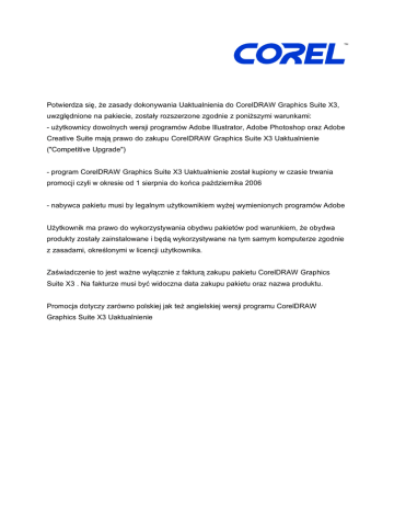 Potwierdza siê, ¿e zasady dokonywania Uaktualnienia do CorelDRAW Graphics Suite X3,