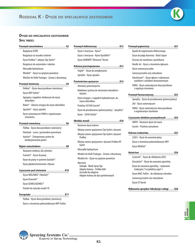 • Dedykowane specjalnym aplikacjom dysze, akcesoria, kolektory, głowice, rury