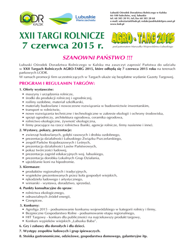 regulamin agro-targ-2015 - Lubuski Ośrodek Doradztwa Rolniczego