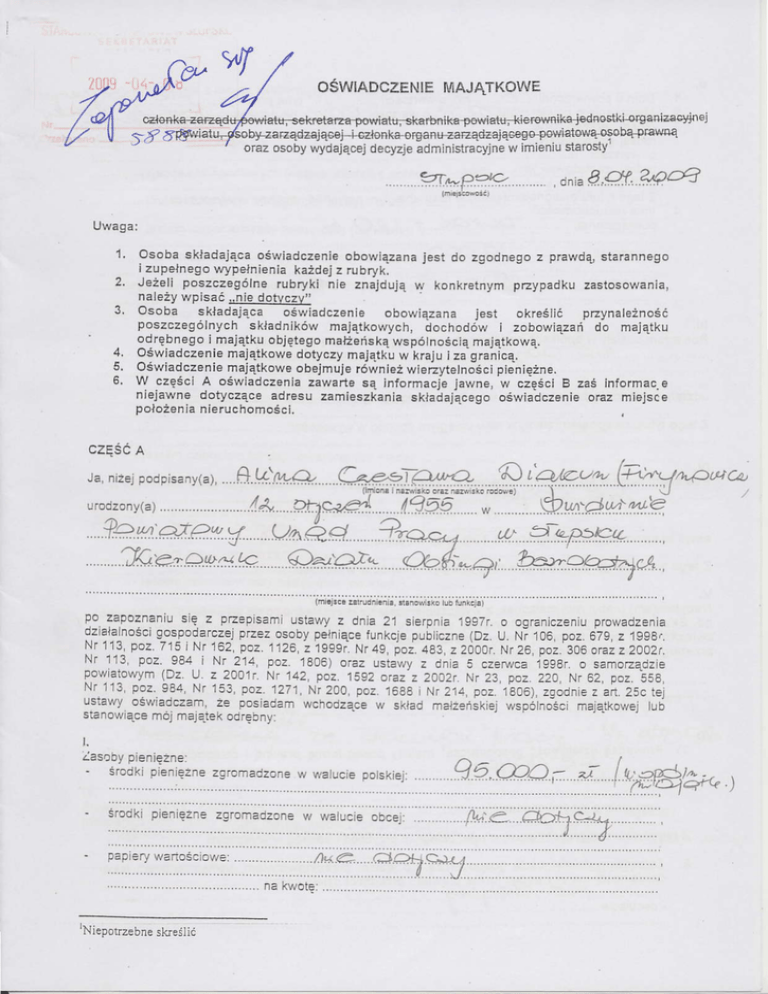 ustawy ośWiadczarn'