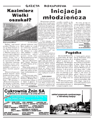Kazimierz Wielki oszukał? Komin sprzed 2700 lat? Biskupin − osada naszych przodków. Wchodząc tu czu− jesz ten klimat dawnych cza− sów. Poprzebierani ludzie: ry− cerze, kaci, tancerze, śpiewa− cy. Wdychasz unoszący się w powietrzu zapach wilgotnych łużyckich konstrukcji drew− nianych. Czujesz wiatr w uszach, który wydaje się jak− by wiał niezmienne od 2700 lat. Odwiedzasz stanowiska, przyglądając się pracy wyko− nywanej przez “dawnych” rze− mieślników, wczuwasz się w klimat łużyckich praprzod− ków... Zabierasz się do pracy przy garnkach, monetach i innych przedmiotach. Jesteś człowie− kiem z tamtych czasów. Nie przeszkadzają ci kolorowe re− klamy i WC−odwiedziny w całkiem nowoczesnej oprawie. Nie obchodzi cię tłum ludzi. Jesteś tylko Ty i klimat sprzed 2,7 tys. lat. Na słynnym fot. Maciej Długi półwyspie podziwiasz chaty (które mogłyby być twoje), ich wykończenie, misternie złączone ze sobą drewniane bale, układające się w jedną całość, dokładnie i z wielką pieczołowitością pokryte trzcinową strzechą dachy. Wracając podziwiasz też wspa− niały, murowany komin... Zaraz, zaraz... Murowany ko− min??! Komin? Murowany ???... (Chata Pałucka, ale Ty o tym nie wiesz). Klimat pryska, pojawia się rzeczywistość. Zapach mokrych belek znika, pojawia się ham− burger z frytkami (średnio wy− smażony). Czyżby Łużyczanie zamie− szkujący Biskupin byli lepsi od Kazimierza Wielkiego? Prze− cież powszechnie wiadomo, że to właśnie on (mówiąc od końca) “zostawił Polskę muro− waną”, a zastał... murowaną??? MACIEJ DŁUGI Inicjacja młodzieńcza Obrzęd przejścia człowieka z grupy dzieci do społeczności dorosłych był zwykle wielkim wydarzeniem. Szczególne rytu− ały towarzyszyły inicjacji chło− pca, dla dziewczyny momentem przejścia były często dopiero zaślubiny. Uniwersalny wzorzec inicjacji u różnych ludów obej− mował kilka zasadniczych części: 1. przygotowanie − poprzez pouczenia, próby, opiekę “nau− czyciela”. 2. śmierć inicjacyjną − reali− zowaną mniej lub bardziej sym− bolicznie np. przez niebezpieczne przejścia przez ogień, ostrza itp. 3. odkrycie swojej mocy i przeznaczenia, w momencie “pobytu w zaświatach” − rów− nież symbolicznych. 4. odrodzenie symboliczne − np. przez obmycie wodą, po− wrót do świata ludzi, ale już w zmienionej kondycji społecznej. Chłopiec oddawany jest spod opieki matki pod opiekę ojca. Od tej chwili będzie uważany za mężczyznę. Motyw obcinania włosów, tak kojarzący się nam ze słowiańskimi postrzyżynami obecny jest również w innych kulturach, jako że długie włosy często były przywilejem kobiet i dzieci znajdujących się pod ich opieką. ZAŚLUBINY Podobnie jak inicjacja sta− nowiły obrzęd przejścia, wiąza− ły się ze zmianą kondycji społe− cznej. Mimo, że była to raczej uroczystość o charakterze spo− łecznym niż religijnym, bogów i przodków wypadało na taką uroczystość zaprosić. Motyw zapłaty za pannę młodą jest bar− dzo powszechny (dziś u muzuł− manów, czy w kulturze ludowej niektórych regionów Polski). Często, choć nie zawsze młodzi ubrani są w biel − symbol czys− tości rozumianej raczej jako czystość duchowa. Obrzędy ślu− bne pełne były symboliki zwią− zanej z płodnością i macie− rzyństwem np. jarzębina, mle− ko. Symbolicznym przejęciem opieki było związanie ślubnego pasa. O błogosławieństwo pro− szono przodków i bóstwa, szcze− gólnie te związane z płodnością. Nie wiemy. jak takie uro− czystości wyglądały w Biskupi− nie, bo dla kultury łużyckiej nie znamy opisów w źródłach. Próby rekonstrukcji oparte są na analogiach z innych kultur starożytnych i współczesnych przy założeniu, że istnieją pew− ne uniwersalne wzorce i symbo− le. Nasze obrzędy są więc tylko próbą rekonstrukcji, nie może− my bowiem powiedzieć: Tak by− ło ło, a jedynie Tak być mogło mogło. Prosimy, pamiętajcie o tym. WIEDŹMA − MONIKA MARZĘTA ZIELARKA − IZA STARUKIEWICZ Pogódka Jak stwierdził Pewien Pan w piątek będzie 30 stopni. Gdzieś pewnie będzie, ale to “gdzieś” na pewno nie jest Biskupinem. W Biskupinie piątek będzie słoneczny (nie upalny, ale zawsze to coś), bo ostatnio dużo ludzi zaczyna chorować. A tak już jest na tym świecie, że jak ma się dziać coś ciekawego, to po− łowa populacji pada. Jedyna nadzieja w tym, że ciekawe− go, to już długo trwać nie będzie. PS. Oświadczam Pewnej Pannie, która miała do mnie nieuzasadnione pretensje, że w prognozie pogody z nume− ru 5 naszej gazety, porusza− łam Jej domniemane zaloty do jednego z wodzów. Tak się składa, że nie mia− łam tej Panny na myśli. Swo− ją drogą, ciekawe dlaczego właśnie ta Panna czuła się obrażona? Wodzów jest czte− rech, panien setki, a tylko Ona zgłosiła swe pretensje. “Uderz w stół, nożyce się odezwą”. Znaczy to, że albo Panna rzeczywiście ma coś na sumieniu, albo jest przewrażli− wiona na swym punkcie, albo jedno i drugie... czego nie ży− czę, bo jeśli to prawda, to jutro będzie gradowa burza. CIEPEŁKO