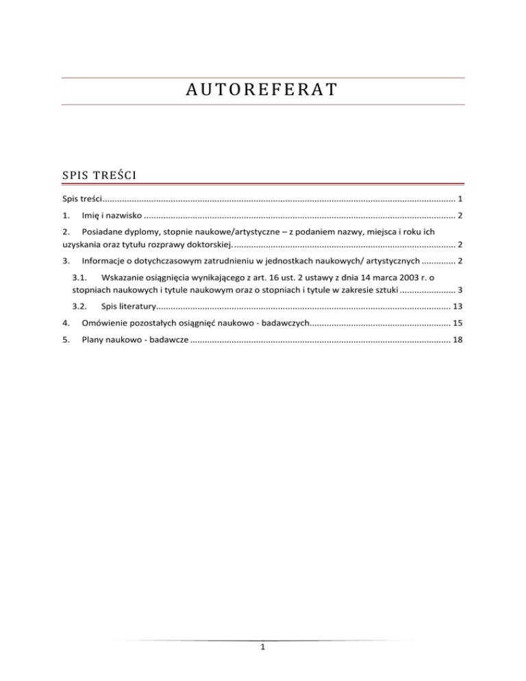 Autoreferat - Uniwersytet Śląski