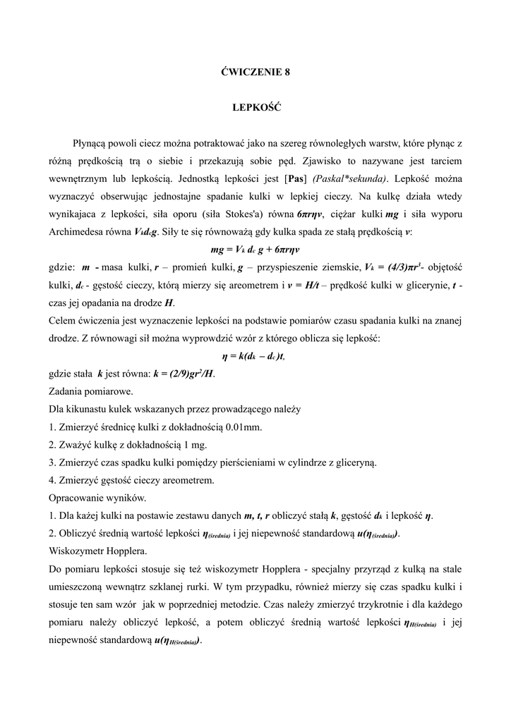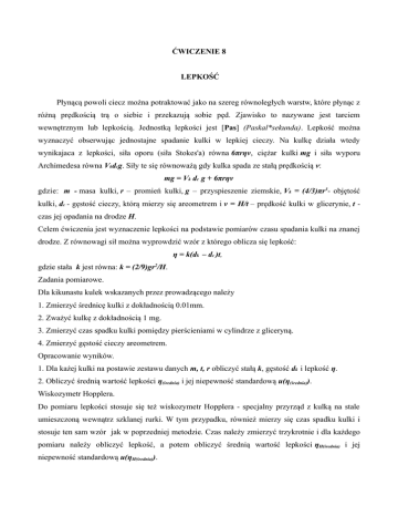 CWICZENIE 8 LEPKOSC Płynącą powoli ciecz można potraktować