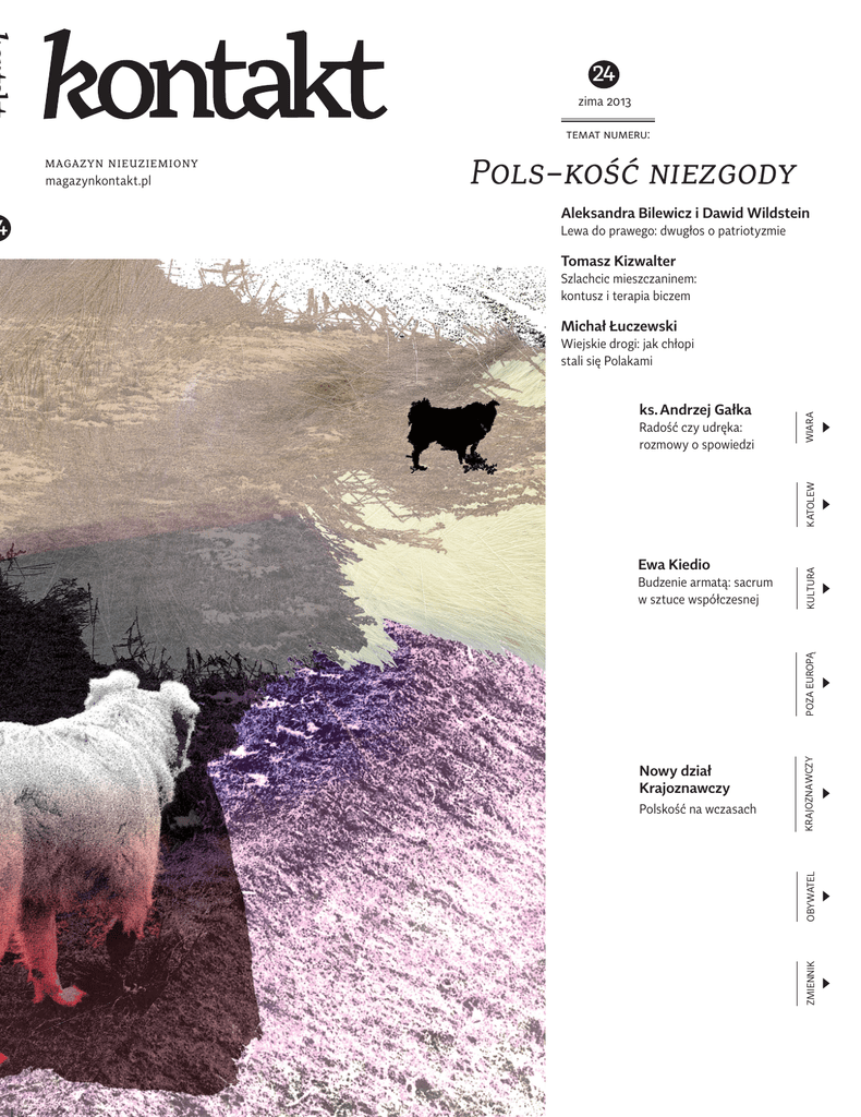 zima 2013 TEMAT NUMERU: POLS-KOŚĆ NIEZGODY Aleksandra Bilewicz i Dawid Wildstein Lewa do prawego: dwugłos o patriotyzmie Tomasz Kizwalter Szlachcic mieszczaninem: kontusz i terapia biczem Michał Łuczewski ks. Andrzej Gałka Ewa Kiedio Nowy dział Krajoznawczy Polskość na wczasach KRAJOZNAWCZY POZA EUROPĄ Budzenie armatą: sacrum w sztuce współczesnej KULTURA KATOLEW Radość czy udręka: rozmowy o spowiedzi WIARA Wiejskie drogi: jak chłopi stali się Polakami OBYWATEL MAGAZYN NIEUZIEMIONY magazynkontakt.pl ZMIENNIK 4 24 MAGAZYN NIEUZIEMIONY magazynkontakt.pl [email protected] Od redakcji redaktor naczelny Misza Tomaszewski [email protected] zastępca redaktora naczelnego Cyryl Skibiński [email protected] sekretarz redakcji Tomek Kaczor [email protected] ZESPÓŁ REDAKCYJNY: redaktor prowadzący numer Cyryl Skibiński projekt graficzny Urszula Woźniak [email protected] Katolew Misza Tomaszewski skład i łamanie Rafał Kucharczuk Kultura Katarzyna Kucharska-Hornung fotoedycja Tomek Kaczor Obywatel Kamil Lipiński ilustracja na pierwszej stronie okładki Olga Micińska olgamicinska.tumblr.com Poza Europą Paweł Cywiński Krajoznawczy Tomek Kaczor komiks na str. 2–3 Dorota Świderska dorkadaily.tumblr.com Wiara Ignacy Dudkiewicz korekta zespół redakcyjny Zmienna/Zmiennik: Mateusz Luft nakład 1000 egzemplarzy Jan Mencwel, Maciek Onyszkiewicz, Joanna Sawicka, Ignacy Święcicki, Konstancja Święcicka, Stanisław Zakroczymski, Jarosław Ziółkowski wydawca KIK Warszawa STALE WSPÓŁPRACUJĄ: Ala Budzyńska, Rafał Bakalarczyk, Bohdan Cywiński, Jędrzej Dudkiewicz, Maciej Folta, ks. Andrzej Gałka, Monika Grubizna, Arek Gruszczyński, Klara Jankiewicz, Wanda Kaczor, Ewa Kiedio, Karol Kleczka, Rafał Kucharczuk, Łukasz Kuśmierz, Anna Libera, Jan Libera, Piotr Maciejewski, Hanka Mazurkiewicz, Kuba Mazurkiewicz, Olga Micińska, ks. Wacław Oszajca, Andrzej Paszewski, Antek Sieczkowski, Ewa Smyk, Krzysztof Śliwiński, Joanna Święcicka, ks. Sławek Szczepaniak, Ewa Teleżyńska, Agnieszka Wiśniewska, Jan Wiśniewski, Krzysztof Wołodźko, Martyna Wójcik-Śmierska, Bartosz Wróblewski, Paweł Zerka prenumerata magazynkontakt.pl/prenumerata złożono krojami Range Serif, Bree, Tabac Sans Dofinansowano ze środków Ministra Kultury i Dziedzictwa Narodowego Więź łącząca Polaków z racji przynależności do jednego narodu od kilku lat wyraźnie spada. Jest to zjawisko o tyle niepokojące, że, jak pisze w komentarzu do badań przedstawionych w tym numerze „Kontaktu” psycholog społeczny Michał Bilewicz, „to właśnie silne więzi są tym elementem tożsamości, który uodpornia na uprzedzenia do obcych czy myślenie spiskowe – a jednocześnie motywuje do działania na rzecz wspólnoty”. Tymczasem więzi spajające Polaków coraz silniej niszczy przywiązanie do zwalczających się nawzajem stronnictw i partii politycznych czy ocena przyczyn katastrofy smoleńskiej. Ale dzieli nas też coś, co wykracza poza bieżące podziały polityczne. Tytułową kością niezgody jest wyobrażenie wzorcowego Polaka i zestawu cech utożsamianych z „polskością”, a co za tym idzie, stosunek do patriotyzmu, a właściwie: patriotyzmów. Z różnymi sposobami umiłowania ojczyzny jest jak z potomstwem Abrahama: jest ich niemal tyle, co gwiazd na niebie. Wielość ta jest jednak w dzisiejszej Polsce w dużej mierze teoretyczna. Nad Wisłą niepodzielnie króluje bowiem model patriotyzmu, odwołujący się do etosu romantycznej martyrologii oraz tęsknoty za narodem jednolitym etnicznie i religijnie, reprezentowany przez środowiska prawicowe. Z monopolu na patriotyzm nie można jednak czynić prawicy zarzutu – nie osiągnęła go przecież podstępem. Szeroko pojęta lewica dobrowolnie oddała jej pole, dystansując się do pojęcia patriotyzmu lub też sprowadzając je do postulatu dbania o własne podwórko i uczciwego rozliczania się z fiskusem. Okrojony do granic możliwości patriotyzm obywatelski nie stanowi poważnej alternatywy dla rozbudzającego zbiorowe emocje, pełnego symboli patriotyzmu prawicy, gdyż nie zaspokaja podstawowej potrzeby społecznej, jaką jest potrzeba przynależności do wspólnoty. Dopóki środowiska, które krytycznie patrzą na dominujący dziś model polskości nie wskażą bliskich sobie punktów odniesienia w polskiej historii, własnych symboli i bohaterów, dopóty skazane będą na porażkę. Dwudziesty czwarty numer „Kontaktu” stanowi wezwanie do poszukiwań takiego kształtu patriotyzmu, który pozwoli budować polską tożsamość otwartą na „innych”, samokrytyczną, ale też pozbawioną zżerających nas kompleksów. JAN MENCWEL I CYRYL SKIBIŃSKI 2 NUMER: 24 ZIMA 2013 pOLS-KOŚĆ NIEZGODY 5 Jan Mencwel: Pols-kość niezgody Jak unieważnić wybór pomiędzy prawicową ksenofobią a liberalną pogardą dla wszystkiego, co polskie? Nasza nadzieja w patriotyzmie krytycznym, lecz gorącym, odwołującym się do poczucia wspólnoty. 10 Aleksandra Bilewicz: Socjalpatriotyzm 16 Dawid Wildstein: Obywatelska Polska „B” 22 Infografika: Czy Polacy znają Polaków? 24 Agnieszka Haska: Witajcie w gułagu 29 Rozmowa z prof. Tomaszem Kizwalterem: Przemiana rycerza w mieszczanina 34 Ignacy Dudkiewicz: Rzeczpospolita wszystkich ludzi 40 Rozmowa z Michałem Łuczewskim: Zimne wojny o Polskę 3 f O T O R E P O RTA Ż p O Z A E U R O PĄ 44 82 Rozmowa z prof. Piotrem Kowalczakiem: Mokry problem 87 Paweł Cywiński: O dwóch atomach wodoru i jednym atomie tlenu Katarzyna Kucharska-Hornung: Znaki zmian wIARA 52 Rozmowa z ks. Andrzejem Gałką: kRAJ0ZNAWCZY Wróciłeś – nie trzeba więcej 90 58 Ewa Kiedio: Krajoznawstwo jako ruch społeczny? Przeszczepiamy idee popularne w przedwojennej Polsce na współczesny grunt. W miejsce miastocentrycznego działu „Warszawa” – nowy dział „Krajoznawczy”! Wszyscy rozebrani 62 Tomek Kaczor: Dział Krajoznawczy Ignacy Dudkiewicz: Otwarte drzwi k AT O L E W 91 Cyryl Skibiński: Polskoś