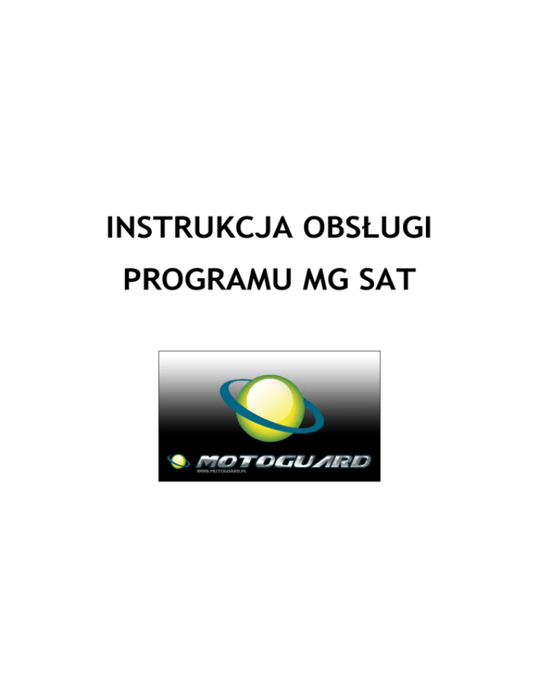 INSTRUKCJA OBSŁUGI PROGRAMU MG SAT 1. Informacje ogólne 1.1. O niniejszej instrukcji Instrukcja zawiera opis najnowszej dostępnej wersji programu i zawarte w niej informacje mogą nieznacznie odbiegać od informacji dla starszych wersji produktu. Wprowadzane zmiany mają na celu poprawę walorów użytkowych wyrobu, jego parametrów i leżą w interesie klienta. Instrukcja zakłada, iż czytelnik posiada ogólne wiadomości i praktykę w posługiwaniu się komputerem z systemem operacyjnym Windows i telefonem komórkowym oraz zna podstawowe słownictwo naukowotechniczne z zakresu tych dziedzin. Pewne informacje powtarzają się kilkukrotnie w różnych miejscach instrukcji w celu ułatwienia szybkiego zrozumienia funkcji, bez potrzeby szukania ich w innych miejscach. 1.2 Opis reklamowo - techniczny MG SAT umożliwia prowadzenie nadzoru logistycznego i alarmowego pojazdów z zainstalowanymi systemami MG SAT GPRS. Systemy te posiadają wbudowany modem telefoniczny GSM/GPRS, a program umożliwia na bieżąco pobieranie i późniejszą analizę danych generowanych przez urządzenie zainstalowane w pojeździe. Współpraca opiera się na wykorzystaniu łączności komórkowej GSM GPRS/SMS pomiędzy pojazdem a komputerem. Istnieje więc możliwość kontroli każdego obiektu z osobna i wszystkich na raz w dowolnym praktycznie momencie. Transmisja danych odbywa się głównie poprzez łączność GPRS, jednak w niektórych przypadkach istnieje możliwość (konieczność) nawiązania łączności SMS (np. brak zasięgu GPRS). Dane otrzymywane z pojazdu to tzw. rekordy, zawierające podstawowe informacje o stanie pojazdu, na przykład położenie geograficzne, prędkość, stan czujników, poziom paliwa i inne. Rekordy transmitowane są do programu na bieżąco, czyli co jedną minutę oraz w momencie wystąpienia zdarzenia alarmowego i są dopisywane do bazy danych. W sytuacji braku zasięgu GPRS rekordy zapisywane są w wewnętrznej pamięci urządzenia (rejestratorze), a następnie przesyłane do programu z chwilą nawiązania łączności GPRS. Taki sposób współpracy umożliwia przeprowadzanie kontroli taboru w trybie on-line, jak również umożliwia przeglądanie „historii choroby”. MG SAT – Instrukcja obsługi 2 2. Opis oprogramowania. Instalacja programu Po włożeniu płytki zawierającej plik instalacyjny programu MG SAT, należy przejść do napędu CD ROM w eksploratorze Windows i wybrać plik mgsatclient-setup.exe. W okienku powitalnym trzeba kliknąć przycisk Dalej. Następnym krokiem jest podanie Nazwiska i Nazwy Firmy. Domyślnie program jest instalowany w katalogu C:\Program Files\MotoGuard\MG SAT (jeśli system znajduje się na dysku C:). Po wybraniu ścieżki instalacyjnej oraz nazwy folderu w menu Start, program instalacyjny przejdzie do kopiowania plików na dysk twardy. Po skopiowaniu program jest gotowy do użytkowania. Uruchomienie programu Uruchomienie programu następuje poprzez uruchomienie pliku MGSAT.exe, który znajduje się w: <Menu Start, Programy, MotoGuard, MG SAT> lub skrótu „MG SAT” na pulpicie. Po uruchomieniu programu pojawi się okno dialogowe zapraszające do załogowania w systemie. Należy podać nazwę firmy, swój login i hasło. Jeśli posiadasz połączenie internetowe oraz wszystkie dane wprowadzisz poprawnie, powinno pojawić się okno potwierdzające pomyślne załogowanie. W przeciwnym razie system wyświetli komunikat o błędzie. MG SAT – Instrukcja obsługi 3 Podczas logowania system sprawdza, czy wersja twojego oprogramowania jest najnowsza. Jeśli na serwerze Motoguard jest dostępna nowsza wersja MG SAT, system poinformuję Cię, że musisz pobrać aktualizację programu. Aby tego dokonać, musisz się połączyć z podanym w okienku adresem, podać login i hasło serwisu (login: motoguard, hasło: motoguard). Po ściągnięcie aktualizacji, należy ją zainstalować w katalogu głównym MG SAT. Podczas uruchamiania program MG SAT wykrywa połączenie z serwerem. Jeśli współpraca nie będzie nawiązana, program się nie uruchomi i zostanie wygenerowany ostrzegawczy dźwięk (pisk), powtarzany co jakiś czas do momentu połączenia z serwerem. Po uruchomieniu programu wygląd ekranu monitora jest następujący: 2.1. Menu „Plik” W menu plik znajdują się komendy umożliwiające wyświetlenie obiektów w oknie zdarzeń znajdującym się w lewej części okna głównego programu. „Dodaj obiekt” - umożliwia wprowadzenie do listy zdarzeń obiektu wybranego z listy obiektów znajdujących się w bazie danych. Po wybraniu komendy otwiera się okno z obiektami. Klikając dwukrotnie na wybrany obiekt lub wybierając OK. po podświetleniu wybranego obiektu dokonujemy wprowadzenia tego obiektu do listy zdarzeń. MG SAT – Instrukcja obsługi 4 „Usuń obiekt” - powoduje usunięcie wskazanego (podświetlonego obiektu) z okna zdarzeń (nie oznacza to usunięcia obiektu z bazy danych). Przyciski „dodaj obiekt” i „usuń obiekt” znajdują się również w listwie przycisków okna głównego programu. „Wszystkie aktywne pojazdy GPRS” - komenda powoduje wyświetlenie wszystkich tych obiektów w oknie zdarzeń, z którymi aktualnie nawiązana jest łączność GPRS. „Dodaj wszystkie obiekty” - powoduje wyświetlenie w oknie zdarzeń wszystkich obiektów wprowadzonych do bazy danych. „Odśwież listę obiektów” - komenda powoduje odświeżenie okna zdarzeń, na przykład po dokonaniu pewnych operacji na obiektach (przeglądaniu historii, oglądaniu szczegółów itp.). „Koniec” - komenda kończy działanie programu i powoduje jego zamknięcie. Po dokonaniu wprowadzenia obiektów na listę zdarzeń okno główne programu wygląda następująco: W lewej części okna głównego wyświetlona jest lista zadeklarowanych przez nas obiektów. Każdy z wierszy zawiera podstawowe informacje o obiekcie. Pierwsza kolumna dla danego obiektu dotyczy stanu systemu w pojeździe i informuje nas o rodzaju komunikatu 
