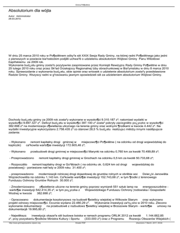 roku. Sprawozdanie z wykonania bud¿etu, obie opinie oraz wniosek o udzielenie absolutorium zosta³y przedstawione