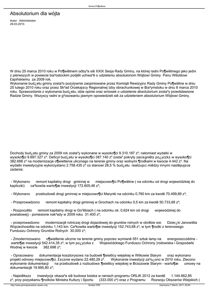 Wykonanie bud¿etu gminy zosta³o pozytywnie zaopiniowane przez Komisjê Rewizyjn± Rady Gminy Po¶wiêtne w dniu