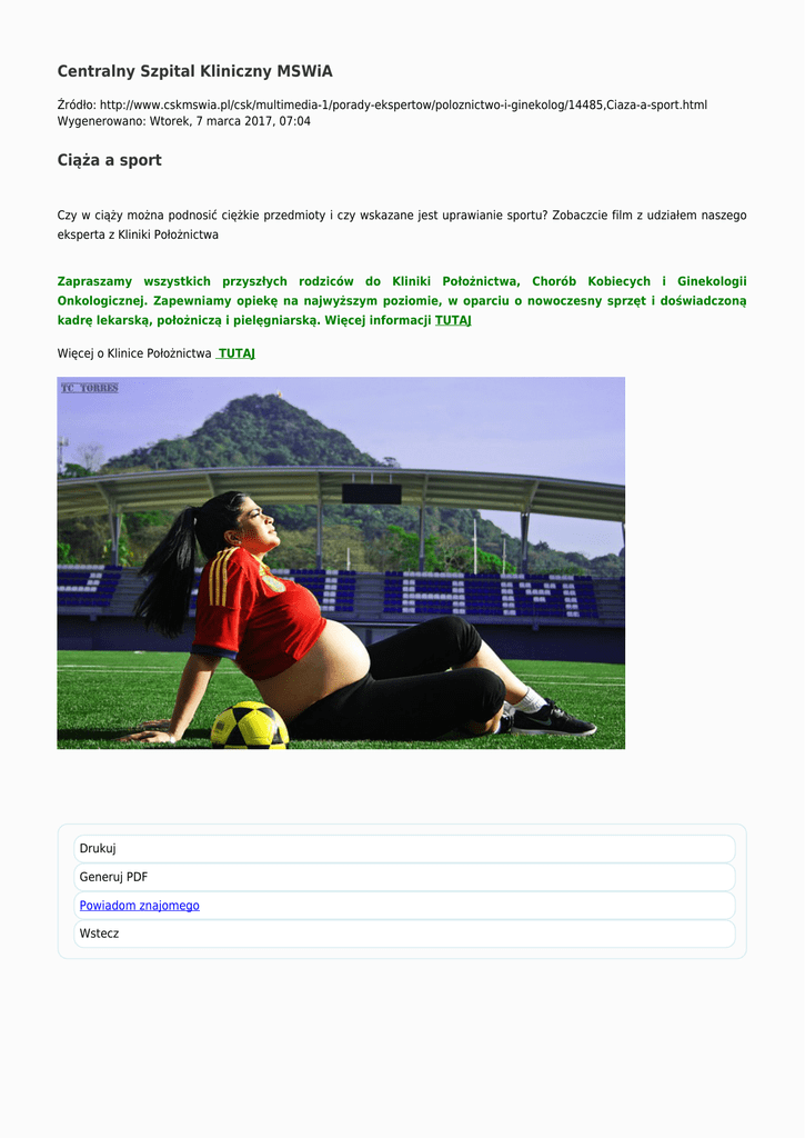Centralny Szpital Kliniczny MSWiA Źródło: http://www.cskmswia.pl/csk/multimedia-1/porady-ekspertow/poloznictwo-i-ginekolog/14485,Ciaza-a-sport.html Wygenerowano: Wtorek, 7 marca 2017, 07:04 Ciąża a sport Czy w ciąży można podnosić ciężkie przedmioty i czy wskazane jest uprawianie sportu? Zobaczcie film z udziałem naszego eksperta z Kliniki Położnictwa Zapraszamy wszystkich przyszłych rodziców do Kliniki Położnictwa, Chorób Kobiecych i Ginekologii Onkologicznej. Zapewniamy opiekę na najwyższym poziomie, w oparciu o nowoczesny sprzęt i doświadczoną kadrę lekarską, położniczą i pielęgniarską. Więcej informacji TUTAJ Więcej o Klinice Położnictwa TUTAJ Drukuj Generuj PDF Powiadom znajomego Wstecz