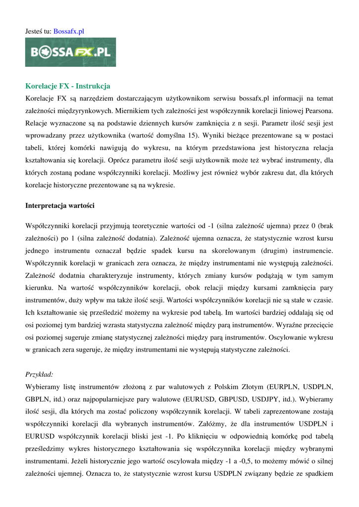 Korelacje FX - Instrukcja