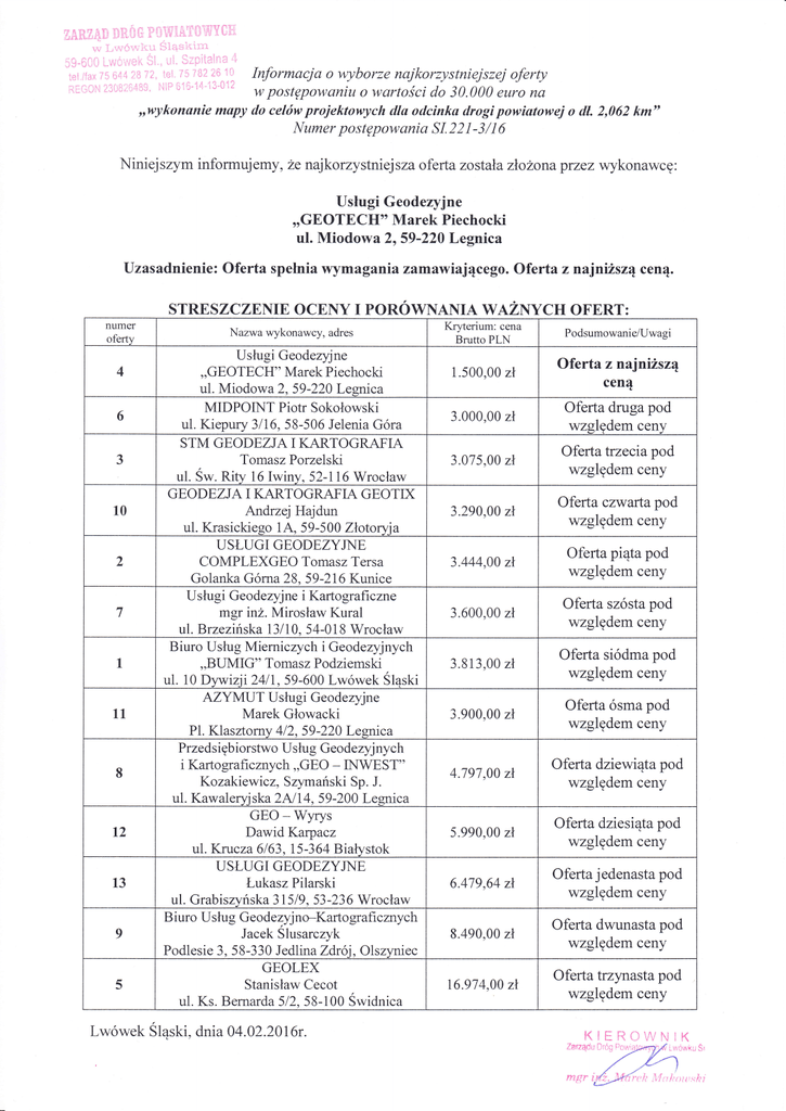 Lwówek Sląski, dnia a4.02.2076r.
