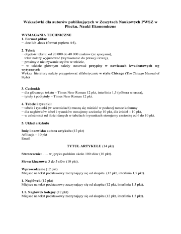 Wymogi redakcyjne - Wydawnictwo Naukowe PWSZ w Płocku