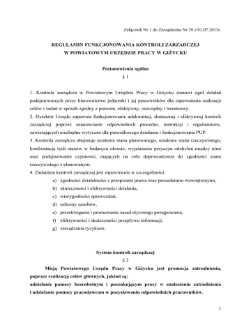 Regulamin funkcjonowania kontroli zarządczej w PUP w Giżycku