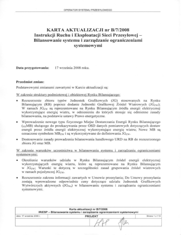 Karta aktualizacji nr B/7/2008