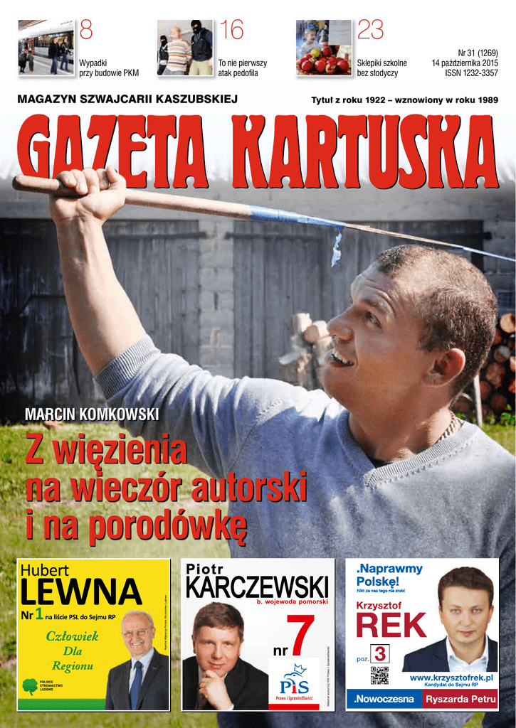 8 16 23 Wypadki przy budowie PKM To nie pierwszy atak pedofila Sklepiki szkolne bez słodyczy Magazyn Szwajcarii Kaszubskiej Marcin Komkowski Z więzienia na wieczór autorski i na porodówkę Nr 31 (1269) 14 października 2015 ISSN 1232-3357 Tytuł z roku 1922 – wznowiony w roku 1989 Kiedy pada deszcz owija ciało folią i brnie przez kałużę, którą ma w przepdpokoju Kiedyś uparł się, żeby nie grypsować. Teraz uparł się i do więzienia nie wróci Diana marzy o olimpiadzie. Dla sportu porzuciła taniec. Jak dotąd nie odniosła porażki KADR 4 Brama Kaszubska VOX POPULI 5 Czy powinniśmy przyjmować uchodźców i imigrantów w naszym powiecie? Wydarzenia 7 8 Wrócił żeby skrzywdzić dziecko PKM: wykolejone lokomotywy Ludzie 11 Bo ja uparty Kaszuba jestem INTERWENCJE PROBLEMY KONTROWERSJE 14 18 Żywieniowa paranoja czy lament sklepikarzy? Pani Maria do Pana Boga pretensji nie ma TAK BYŁO 22 22 22 22 22 22 23 23 23 23 23 23 23 23 23 Kartuzy: o funduszach europejskich na Rynku PKM-ka ruszyła Zmiany w segregacji śmieci Znaleziono zwłoki Marcina Szcześniaka Więcej pieniędzy na kanalizację w Przodkowie Walczyli o „Złotą Łyżkę” Uroczyste odsłonięcie pomnika „Inki” Śmierć na drodze – wbiegł pod samochód Święto patrona Kartuz Rodzinny rajd na zakończenie lata „Gramy i Śpiewamy dla Julki” Dwujęzyczne tablice w gminie Wyrok Sądu w sprawie „stawek śmieciowych” Akcja na rzecz kartuskiego hospicjum Żydzi – nasi dawni sąsiedzi TAK BĘDZIE 24 24 24 24 24 24 24 24 24 24 Koncert z okazji Dnia Edukacji Narodowej Ryszard Petru w Kartuzach „Tyle wiemy o sobie na ile nas sprawdzono” Uroczystość 96 rocznicy powstania 66 Kaszubskiego Pułku Piechoty im. Marszałka Józefa Piłsudskiego XVII Forum Twórczości Ludowej Ziemi Kaszubskiej Bieg Przyjaźni „Żukowska 15” SWAP SHOP w Chmielnie Uroczystość strażacka Spektakl dla dzieci Trening z Kacprem Lachowiczem SPORT 26 Żaden start nie był porażką HISTORIA 28 Nie tylko śląskie i wielkopolskie RECENZJE 29 29 Kartuzy sprzed stu lat „Śpiewaj ogrody”. Po kaszubsku. „Oddajemy dziś do rąk Czytelników...” – zwykło się pisać w tym miejscu w takich momentach. Pewnie tak właśnie trzeba by zacząć ten krótki felieton, w którym wypada wspomnieć, że oto Gazeta Kartuska, pod nowym przewodnictwem i z nowym – w większości, zespołem, zyskuje nowe oblicze. Wypada by to wszystko powiedzieć, ale trema ściska za gardło. Bo czy się Państwu nowa Gazeta Kartuska spodoba? Czy zyska Państwa akceptację? Wszyscy w redakcji mamy nadzieję, że tak właśnie będzie. Tego sobie życzymy. Tymczasem zapowiadamy, że: Po pierwsze – najważniejsi będą dla nas ludzie, mieszkańcy, ich codzienne porażki i zwycięstwa. Choć trąci to banałem, to… Sami Państwo możecie zobaczyć: piszemy o pani Marii z Chmielna, która poczuła się skrzywdzona przez urzędników z GOPS-u, o drodze Marcina Komkowskiego spod Mirachowa do normalnego życia z dala od więziennych krat. Po drugie – będziemy zadawać pytania urzędnikom, włodarzom i funkcjonariuszom. I sprawdzać, jakie są efekty ich działania. Tak jak sprawdzamy, czy zakaz sprzedaży słodyczy w szkolnych sklepikach to dobry pomysł, tak jak sprawdzamy, co konkretnie zrobił chmieleński GOPS w sprawie pani Marii. Po trzecie – będziemy pamiętać, że żyjemy tu, na Kaszubach. Wszystko, co kaszubskie, będzie dla nas interesujące. Poza tym – zdajemy sobie sprawę, że pracujemy w najstarszej gazecie w Kartuzach, która ma najbogatsze tradycje. Dlatego też będziemy wracać do przeszłości tej ziemi i jej mieszkańców, szczególnie do wydarzeń niedostatecznie znanych i opisywanych. Takich, jak na przykład kaszubskie powstanie, do którego ostatecznie nie doszło, o którym piszemy w niniejszym wydaniu. Wrócę jeszcze do tremy – choć, jak już napisałem, ściska nas ona teraz za gardło, to zbieramy się na odwagę i prosimy Was – naszych Czytelników, o opinie na temat starej i nowej zarazem Gazety Kartuskiej. Piszcie do nas, czy się podoba, co jeszcze trzeba zmienić, do czego wrócić. Niech nasze łamy będą do Waszej dyspozycji. Zróbmy tę gazetę razem. Tym bardziej, że dalej będzie się ona zmieniała. I jeszcze jedno: zajrzyjcie Państwo na stronę gazetakartuska.pl. Chcielibyśmy, żeby rozgorzały tam gorące – ale konstruktywne i merytoryczne dyskusje o tym, o czym dla Was piszemy. Tomasz Słomczyński Redaktor Naczelny Wydawca: Spółka Wydawnicza Remus Sp. z o.o. Adres wydawcy i redakcji: „Gazeta Kartuska”, plac św. Brunona 7, 83-300 Kartuzy, tel. 58 681 34 86 Redaktor naczelny: Tomasz Słomczyński, [email protected] Zastępca redaktora naczelnego: Katarzyna Kołodziejska, [email protected] Dziennikarze: Lucyna Puzdrowska, [email protected]; Kamil Błaszkiewicz, [email protected] Reklama: [email protected], tel.: 58 685 33 69, 725 725 194 Druk: Drukarnia Wydawnictwa „Bernardinum” Sp. z o.o., ul. Biskupa Dominika 11, 83-130 Pelplin ISSN 1232-3357 www.gazetakartuska.pl Skład komputerowy, opracowanie graficzne: Marcin Lipiński Zdjęcia niepodpisane pochodzą z archiwum redakcji. Redakcja zastrzega sobie prawo do zmian, skrótów i niepublikowania nadesłanych tekstów. Za treść reklam i ogłoszeń redakcja nie odpowiada. 4 | K adr Gazeta Kartuska, Nr 31 (1269) 14 października 2015 Gazeta Kartuska, Nr 31 (1269) 14 października 2015 Vox p o pu li | 5 Czy powinniśmy przyjmować uchodźców i imigrantów w naszym powiecie? Uważam, że nie powinniśmy przyjmować imigrantów. Nie boję się, że zabiorą nam miejsca pracy. Chodzi o ich wyznanie. Islam jest dosyć kontrowersyjną religią i myślę, że zderzenie dwóch tak odmiennych kultur niczego dobrego nie wróży. Dorota Jakie zdjęcie wybrać do pierwszego numeru starej-nowej Gazety Kartuskiej? Gdy zobaczyłem w kadrze kaszubską bramę na środku łąki, nie zastanawiałem się długo. B rama jest jeszcze zamknięta. Trzeb