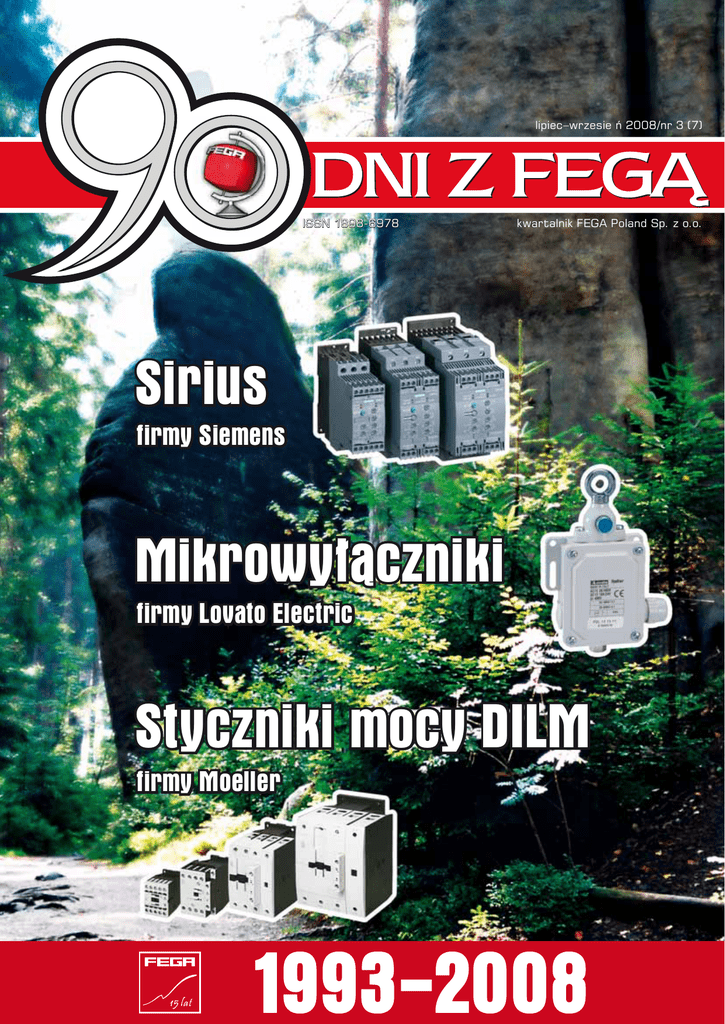lipiec–wrzesie ń 2008/nr 3 (7) ISSN 1898-6978 kwartalnik FEGA Poland Sp. z o.o. Sirius firmy Siemens Mikrowyłączniki firmy Lovato Electric Styczniki mocy DILM firmy Moeller WSTĘP Anna Chrzanowska-Łysak, Kierownik Działu Marketingu Witam Państwa, am przyjemność oddać w Państwa ręce nowy numer „90 dni z FEGĄ”. W związku z tym, iż przed nami lato w pełni, zachęcam Państwa do przeczytania w pierwszej kolejności tematów łatwych i przyjemnych. Tak więc na dobry początek proponuję dział wydarzenia z raportem z urodzinowego jubileuszu naszej firmy. 13-stego w czerwcowy piątek mieliśmy okazję bawić się wraz z klientami i dostawcami na „Jubileuszu pod napięciem”. Na kolejny przystanek w podróży po kwartalniku polecam odcinek FEGAfilii, tym razem, przeniesiemy się do Poznania. Następnie Rozmaitości i przygoda Fegusia. Po chwili rozrywki czas wrócić do tematów, co prawda trudniejszych, ale równie przyjemnych. Firma Siemens przygotowała artykuł o układach łagodnego rozruchu z rodziny SIRIUS. Moeller omawia styczniki mocy DILM, które dzięki swojej konstrukcji, rozwijanej od wielu lat, są wyznacznikiem jakości w tej klasie aparatów. Schneider Electric przedstawia nam nowy sterownik Modicon M340, który zastąpił sterownik TSX Micro. Nowością produktową – rozdzielnicą FW Media – chwali się firma Hager. Ciekawy artykuł prezentuje firma Rittal, mówi o nowej linii produktów Hygienic Design (HD) przeznaczonej dla branży produkującej żywność, odpornej na bakterie i inne szkodliwe organizmy. Natomiast firma Lovato Electric, z szerokiej gamy aparatury elektrycznej niskiego napięcia, w aktualnym numerze omawia wyłączniki krańcowe i nożne. W drugim swoim artykule Schneider Electric prezentuje najnowszą serię łączników i gniazd pod nazwą Anya, która została stworzona w poszukiwaniu idealnego rozwiązania, łączącego atrakcyjny kształt z zaletami funkcjonalnymi M lipiec – wrzesień 2008 i technicznymi oraz wysoką jakością. Natomiast firma Legrand przedstawia Program Mosaic, który od wielu lat systematycznie jest rozbudowywany do potrzeb zmieniającego się rynku. Dzisiaj w spójny sposób realizuje ponad 200 funkcji niezbędnych we współczesnych biurach. Firma Spelsberg zachęca do stosowania rozbudowanego systemu IBT, który w swoim zamierzeniu przeznaczony jest do dużych obiektów, choć pojedyncze elementy można również stosować w budownictwie indywidualnym. Na koniec proponuję artykuł o nowym systemie komunikacji bezprzewodowej SureCross DX70 firmy Banner, reprezentowanej przez firmę TURCK. Razem z całym zespołem FEGA Poland życzę Państwu przyjemnej lektury naszego kwartalnika, a przede wszystkim udanego letniego wypoczynku. Serdecznie pozdrawiam Anna Chrzanowska-Łysak Kierownik Działu Marketingu 3 SPIS TREŚCI WYDARZENIA 13-stego w piątek… 3 PREZENTACJE FEGAfilia – Poznań 6 Układy łagodnego rozruchu z rodziny Sirius PRODUKTY do styczników o mocy do 250 KW Styczniki mocy DILM 7 10 Efekt pioruna. Ochrona przeciwprzepięciowa w budynkach. 14 Sterownik Modicon M340 18 System komunikacji bezprzewodowej SureCross™ DX70 w IP67 19 Mikrowyłączniki, wyłączniki krańcowe z kablem, wyłączniki krańcowe i nożne 22 FW Media – nowe rozdzielnice podtynkowe 26 Hygienic Design – innowacyjna linia produktów RITTAL dla przemysłu spożywczego 28 Devilink – ultranowoczesny system bezprzewodowego sterowania domowymi instalacjami grzewczymi 30 Anya – najnowsza seria łączników i gniazd 32 LEGRAND: Program Mosaic™ idealne rozwiązania do biur 34 Instalacje elektryczne ROZMAITOŚCI 4 w konstrukcjach betonowych 36 Prenumerata 37 Przygody Fegusia 39 Kontakt 40 WYDARZENIA 13-stego w piątek… Urodzinowy jubileusz FEGA Poland sp. z o.o. mieliśmy okazję uczcić, wraz ze swoimi Klientami, w czerwcowy dzień... właśnie 13-stego w piątek. I choć jest to data, która sprawia, że niejedna osoba woli zamknąć się w domu, by nie sprowokować nieszczęść, a każdy czarny kot jest złym czarnoksiężnikiem, to na brak gości nie mogliśmy narzekać. Było nam niezmiernie miło, gdy pojawiało się coraz więcej znajomych twarzy. Witaliśmy gości z nostalgią, wspominając nasze początki w biznesie..., pierwsze spotkania, pierwsze wspólne szkolenia, imprezy integracyjne... Powitalne przemówienie dyrektora D Agresywny księgowy Na dobry początek na scenie zagościł Kabaret Moralnego Niepokoju, który zaaplikował gościom dużą dawkę dobrego humoru. Do dziś niebieska wiewiórka gości w firmowych dowcipach, a rozwiązywanie krzyżówek wg ich receptury nadal wzbudza podziw. Dyrektor handlowy Paweł Jaworski wręczył nagrody Klientom oraz pracownikom. Wyłoniono Wielką Piątkę FEGA, osoby, które dzięki swojemu zaangażowaniu znacząco wpłynęły na rozwój i funkcjonowanie firmy, nagrodzeni zostali Anna Chrzanowska-Łysak, Sławomir Skiba, Damian Tomicki, Marcin Godzik oraz Krzysztof Kuchciński. Oklaski, okrzyki uznania i… niezapomniane wykonanie „sto lat” Jacka Krynickiego… Pracownicy FEGA wśród gwiazd Dobrą zabawę połączyliśmy z działaniami charytatywnymi – licytowano obrazy, a dochód z ich sprzedaży został przekazany na rzecz świetlicy środowiskowej „Źródełko”. Dziękujemy wszystkim osobą, które brały udział w licytacji za wielkie serce. Państwa hojność sprawi, że tegoroczne wakacje będą dla tych dzieci miłe, bezpieczne i pełne wrażeń. Nad całą zabawą czuwali radiowi prezenterzy: Adrian Harasim oraz Maciej Stajniak, którzy zagrzewali gości do walki w „Strefie niebanalnych konkurencji”, gdzie obecni uczestnicy mogli wcielić się w zapaśników sumo, kowbojów oraz sprawdzić swoje umiejętności slalomowe jeżdżąc segway’em. Wiele kontrowersji wzbudzała konkurencja pt. „strefa latającej cewki”, na szczęście nie była ona niebezpieczna dla zdrowia, wbrew wcześniejszym niepokojom. Koncert Szymona Wydry & Carpe Di
