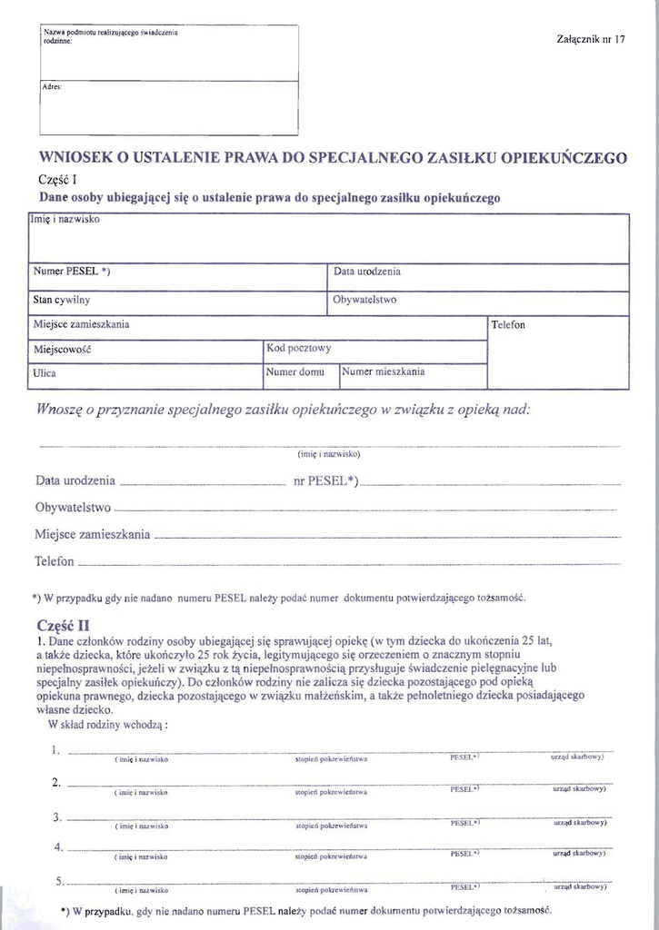 WNlOSEK 0 USTALENIE PRAWA DO SPECJALNEGO ZASILKU OPIEKuNCZEGO