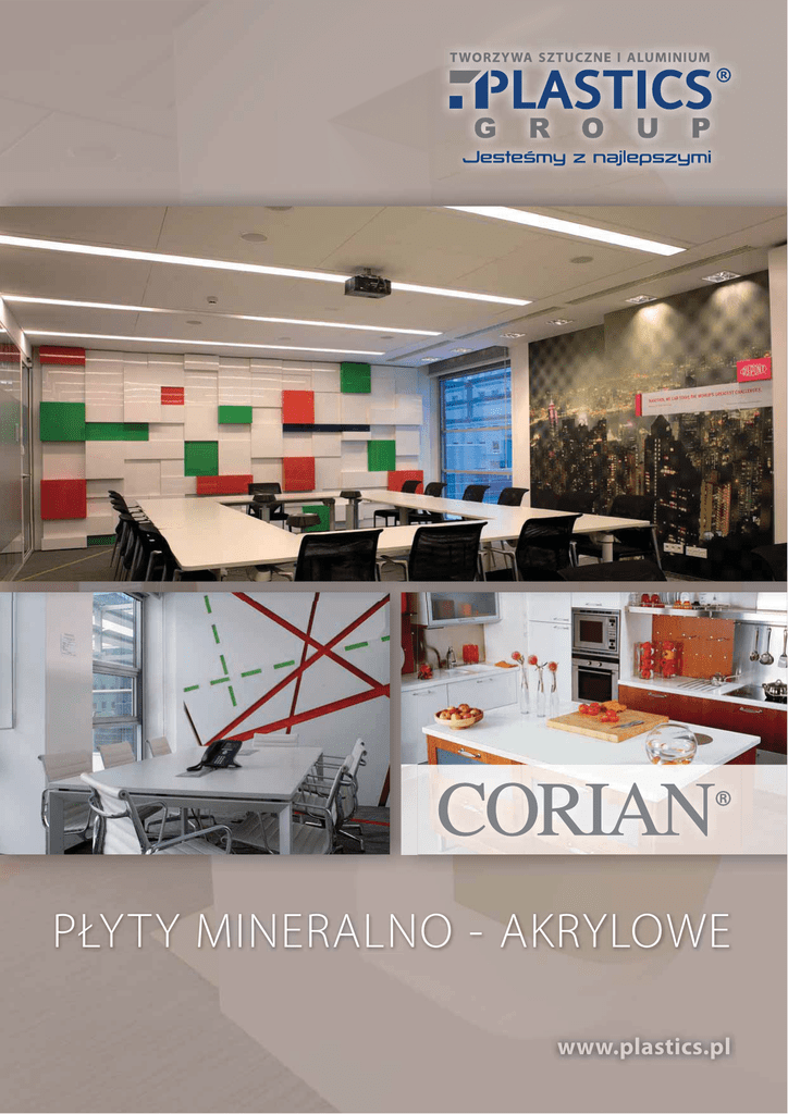 PŁYTY MINERALNO - AKRYLOWE www.plastics.pl KUCHNIA Corian® wynaleziony został w 1967 r. przez firmę DuPont™, pierwszego producenta materiałów typu solid surface na świecie. Jest to trwały, nieporowaty, jednorodny materiał powierzchniowy, składający się w ok. 1/3 z żywicy akrylowej (znanej także jako polimetyl, metakrylan lub PMMA), a w ok. 2/3 z minerałów naturalnych. Dostępny jest w 100 kolorach. DuPont™ Corian® wykorzystywany jest do produkcji elementów wyposażenia wnętrz i we wzornictwie. Jego niezwykłe właściwości, w szczególności możliwość wykonywania niewidocznych łączeń, powodują, że może zostać zrealizowana praktycznie każda wizja projektowa. 2 ŁAZIENKA Płyty Corian® poddane procesowi obróbki oraz klejenia zachowują wyjątkowe właściwości nie przepuszczające wilgoci, co czyni je idealnym rozwiązaniem w przypadku wykorzystania w łazienkach, pokojach kąpielowych, pomieszczeniach sanitarnych. Corian® jest używany przy wykonawstwie zlewów, umywalek, ścian prysznicowych oraz wielkopowierzchniowych parapetów. Płyty Corian® są odporne na odbarwienia oraz wpływ wody co daje nieograniczone możliwości zastosowań. 3 PRZESTRZEŃ PUBLICZNA Płyty Corian® znajdują zastosowanie przy realizacji estetycznych wykończeń powierzchni biurowych, punktów informacyjnych, recepcji, lad i stanowisk sprzedaży. Są również stosowane jako materiał elewacyjny. Nieporowatość gwarantuje, że płyty Corian® są odporne na wnikanie brudu i bakterii spełniając najsurowe normy sanitarne. W związku z tym Corian® wykorzystywany jest w sektorze medycznym - szpitalne sale operacyjne, gabinety lekarskie, laboratoria oraz gastronomicznym - restauracje, bary. 4 KOLORYSTYKA NON SOLID White Jasmine Whitecap Antarctica Savannah Abalone Sahara Aurora Beige Fieldstone Fossil Everest Silver Birch Linen Clam Shell Burled Beach Mojave Sagebrush Sienna Brown Lava Rock Eclipse Dusk Arrowroot Silverite Raffia Sandstone Sonora Medea Anthracite Midnight Platinum Juniper Aqua Dove Matterhorn Canyon Cocoa Brown Black Quartz Night Sky Designer White Cameo White Bisque Bone Vanilla Glacier White Light Ash Ethereal Azure Diamond Blue Beryl Blue Private Gray Noble Ecru Seagrass Serpentine Green Blooming Green Elegant Gray Clay Athena Gray Distinct Tan Chic Aubergine Absolute Beige Imperial Yellow Citrus Orange Grand Brown Royal Red Pearl Gray Silver Gray Deep Gray Nocturne Coffee Bean Mint Ice Lime Ice SOLID ILLUMINATION Glacier Ice Ice White Blueberry Ice 5 UMYWALKI I ZLEWY Umywalka 810 Umywalka 815 Umywalka 831 Zlew 802 Zlew 804 Zlew 809 Zlew 857 Zlew 859 Zlew 871 Zlew 881 Zlew 901 Zlew 965 Zlew 966 Zlew 967 Zlew 969 Umywalki i zlewy produkowane są z tych samych materiałów co płyty mineralno-akrylowe metodą odlewania lub termoformowania. Połączenia pomiędzy płytami a umywalkami (zlewami) są niewidoczne. Zapewnia to wyjątkowy efekt wizualny i estetyczny z zachowaniem wysokich norm higienicznych. Standardowa oferta obejmuje cztery kolory. Na zamówienie pełna kolorystyka. Zlew 850 KATOWICE KRAKÓW www.plastics.pl Centrala - ul. Kolumba 40 02-288 Warszawa tel. (22) 575 08 00 fax (22) 575 08 89 e-mail: [email protected] Magazyn Centralny - Rychwał k. Konina - Dąbroszyn 73 B 62-570 Rychwał tel. (63) 246 48 50 fax (63) 246 48 51 e-mail: [email protected] Gdańsk - ul. Olsztyńska 3 80-395 Gdańsk tel./fax (58) 553 89 89 e-mail: [email protected] Gdynia - ul. Krzywoustego 8 81-035 Gdynia tel. (58) 663 15 45 fax (58) 663 15 53 e-mail: [email protected] Katowice - ul. Roździeńska 41 40-382 Katowice tel. (32) 603 69 50 fax (32) 603 69 60 e-mail: [email protected] Koszalin - ul. Szczecińska 14-16 75-135 Koszalin tel. (94) 347 15 38 fax (94) 347 15 15 e-mail: [email protected] Kraków - ul. Christo Botewa 4 A 30-798 Kraków tel. (12) 651 35 90 fax fax (12) 651 35 99 e-mail: [email protected] Lublin - Al. Witosa 18 A 20-315 Lublin tel. (81) 441 01 21 fax (81) 441 01 22 e-mail: [email protected] 6 Zlew 873 Olsztyn - Al. Piłsudskiego 72 D 10-450 Olsztyn tel./fax (89) 533 51 35 e-mail: [email protected] Opole - ul. Dworska 2 45-750 Opole tel./fax (77) 454 24 21 e-mail: [email protected] Rzeszów - ul. Boya-Żeleńskiego 16 35-105 Rzeszów tel. (17) 857 75 55 fax (17) 857 78 85 e-mail: [email protected] Szczecin - ul. Piskorskiego 21 70-809 Szczecin tel. (91) 432 08 17 fax (91) 464 38 28 e-mail: [email protected] Warszawa - ul. Kolumba 40 02-288 Warszawa tel. (22) 575 08 43, 53 fax (22) 575 08 88 e-mail: [email protected] Wrocław - ul. Robotnicza 70 E 53-608 Wrocław tel. (71) 797 77 80 fax (71) 797 77 93 e-mail: [email protected] Zamość - ul. Kilińskiego 70 22-400 Zamość tel./fax (84) 639 29 53 e-mail: [email protected] Zielona Góra - ul. Działkowa 19 65-767 Zielona Góra tel. (68) 453 37 44 fax (68) 323 58 36 e-mail: [email protected]