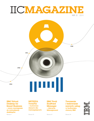IICMAGAZINE NR 2 2011 1968 1961 1954 1953 IBM Virtual Desktop for Smart Business NETEZZA TwinFin Strona 4 Strona 10 – nowe rozwiązanie do wirtualizacji desktopów – hurtownia danych dla wymagających IBM Tivoli EndPoint Manager Tworzenie i testowanie nowych usług Strona 14 Strona 19 – Lifecycle Management w środowisku chmury IBM INTRO NR 2 2011 IIC MAGAZINE Drodzy Deweloperzy, zapraszam do lektury najnowszego wydania kwartalnika IIC Magazine. Marcin Rzeczkowski w swoim artykule prezentuje produkt do wirtualizacji desktopów – IBM Virtual Desktop for Smart Business. Rozwiązanie to umożliwia dostęp do osobistej stacji roboczej klasy PC z dowolnego miejsca, za pośrednictwem różnych urządzeń. Następnie Mariusz Czopiński przybliża nam nowy produkt z oferty IBM Business Analytics – Netezza TwinFin. Jest to rozwiązanie hurtowniane klasy enterprise zaprojektowane do pracy z dużymi wolumenami danych. W aktualnym numerze znajdziecie również kontynuację tematu związanego z IBM Tivoli EndPoint Manager. Marcin Panasiuk opisuje Lifecycle Management – funkcjonalność służącą do zarządzania cyklem życia stacji klienckich. IBM Virtual Desktop for Smart Business Na koniec Rafał Szafulera przedstawia usługę IBM SmartCloud Enterprise udostępniającą środowiska Test & Development w chmurze publicznej. Nie zapomnijcie także odwiedzić sekcji z nowinkami technologicznymi oraz odpowiedzieć na pytanie konkursowe. Życzę przyjemnej lektury Monika Kamińska Redaktor prowadząca NETEZZA TwinFin 02 – hurtownia danych dla wymagających STR. 10 – nowe rozwiązanie do wirtualizacji desktopów STR. 4 01 SPIS TREŚCI 1953 Linia czasu 1954 100 lat IBM W czerwcu 2011 r. IBM obchodzi swoje 100-lecie. Z tej okazji zachęcamy do poznania niektórych faktów z historii firmy prezentowanych na stronach IIC Magazine. 2 IBM INNOVATION CENTER www.ibm.com/pl/iic IIC MAGAZINE IBM Innovation Center My developerWorks Centrum zapewniające bezpłatne wsparcie kompetencyjne oraz sprzętowe Partnerom Handlowym oraz Klientom IBM, ułatwiające procesy związane z portowaniem, testowaniem oraz integracją aplikacji tworzonych w odpowiedzi na potrzeby rynku. Centrum IIC gwarantuje fachową pomoc na każdym etapie rozwoju i życia aplikacji. Umożliwia dostęp do najnowszych technologii, narzędzi programistycznych oraz laboratoriów informatycznych. W Polsce funkcjonują dwa ośrodki IIC – w Warszawie oraz Krakowie. Szukasz najlepszego źródła informacji dla deweloperów? Już dziś dołącz do grona specjalistów zarejestrowanych na My developerWorks, który jest częścią portalu developerWorks. Znajdziesz tam m.in. bezpłatne wersje oprogramowania IBM, artykuły techniczne, tutoriale, fora dyskusyjne, blogi i wiele innych zasobów. Więcej na stronie: ibm.com/developerworks/mydeveloperworks Więcej na stronie: ibm.com/pl/iic IBM Tivoli EndPoint Manager 03 – Lifecycle Management STR. 14 05 Wydarzenia i nowinki technologiczne STR. 22 Tworzenie i testowanie nowych usług w środowisku chmury IBM 04 1961 www.ibm.com/pl/iic STR. 19 1968 IBM INNOVATION CENTER 3 01 NR 2 2011 IIC MAGAZINE IBM Virtual Desktop for Smart Business – nowe rozwiązanie do wirtualizacji desktopów Coraz częściej przedsiębiorstwa decydują się na wirtualizację stacji roboczych, widząc korzyści płynące z tej technologii. Wprowadzenie takiego rozwiązania zwiększa efektywność, zmniejsza wydatki związane z zarządzaniem i eksploatacją, poprawia bezpieczeństwo oraz standaryzuje środowisko. Wartości, którymi są zainteresowani klienci, to szybsze i łatwiejsze wdrażanie desktopów, obsługa nowych modeli pracy, takich jak praca zdalna, domowa czy mobilna oraz możliwość wykorzystania różnego typu urządzeń końcowych (terminal Thin Client, tani laptop, PDA czy urządzenia dotykowe, takie jak Apple iPad). W poniższym artykule przedstawimy krótki opis architektury takiego rozwiązania oraz opis podstawowych opcji przydatnych w zarządzaniu. Oprogramowanie IBM Virtual Desktop for Smart Business (VDSB) należy do nowej rodziny produktów Smart Business dedykowanych dla małych i średnich przedsiębiorstw. Dzięki temu rozwiązaniu użytkownicy, przy wykorzystaniu różnego typu urządzeń, poprzez sieć uzyskują dostęp do swojej własnej wirtualnej stacji roboczej przechowywanej w Data Center. Konsolidacja usprawni zarządzanie zróżnicowanymi środowiskami desktopowymi, jak również pozwoli wyeliminować ryzyko utraty danych związane z kradzieżami laptopów i innych urządzeń lub awarii któregoś z podzespołów. Wraz z wirtualizacją desktopów znika sprzęt, a najważniejszy staje się użytkownik otrzymujący zdalny dostęp z dowolnego praktycznie urządzenia do swojego środowiska pracy. Daje to użytkownikom większą swobodę pracy, a działowi IT pełną kontrolę. Dlaczego warto zwirtualizować środowisko pracy użytkowników? Gdy z jakichkolwiek przyczyn nie będzie możliwy dostęp do firmowych danych lub nastąpi ich utrata, proces przywracania w modelu tradycyjnym trwa z reguły o wiele dłużej niż w środowisku wirtualnym. Kolejny problem, to wymiana systemu operacyjnego w laptopach 4 IBM INNOVATION CENTER użytkowników. Nowe, wirtualne systemy tworzy się bardzo szybko – aktualizuje się tylko jeden główny obraz, łatwo tworzy się backup i odtwarza dane. W przypadku, gdy firma posiada dużą liczbę pracowników mobilnych, którzy ze swoimi notebookami często pracują w terenie, to dla działów IT stanowi poważne wyzwanie jak zarządzać tym sprzętem, np. aktualizować oprogramowanie. Reakcja na jakiekolwiek zdarzenia związane z rozproszonymi komputerami jest trudna. Przez brak standaryzacji w środowisku fizycznym działy IT nie mogą skutecznie zarządzać i zabezpieczać urządzeń końcowych. W przypadku takich czynności, jak np. modyfikowanie konfiguracji systemu operacyjnego, pojawiają się użytkownicy, u których występują niestandardowe proble
