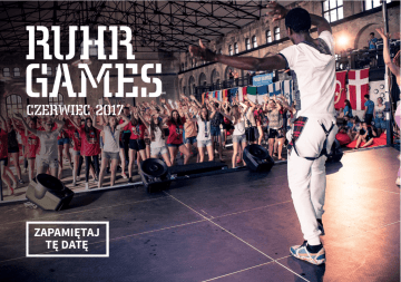 CZERWIEC 2017 ZAPAMIĘTAJ TĘ DATĘ TERMIN: 15-18 czerwca 2017 po raz drugi odbędzie się wielki Europejski Festiwal Sportu w zagłębiu Rury. Już latem 2015 wydarzenia Ruhr Games w ciekawej mieszance dyscyplin olimpijskich, imponujących sportów akcji i fascynujących koncertów, zachwyciły znacznie ponad 100.000 widzów z regionu i całej Europy. Także w 2017 roku ponownie zostaną ożywione fascynacje, emocje i różnorodność oraz wymiana kulturalna pomiędzy różnymi narodowościami. Młodzież z całej Europy będzie miała możliwość przeżywania międzynarodowego Festiwalu Sportu i konkurowania w 14 rodzajach sportu w różnych dyscyplinach i klasach sportowych. Przy zdecentralizowanym zakwaterowaniu (np. rodziny, szkoły) instytucje otrzymają dofinansowanie w kwocie 100 € na dla każdego spośród młodzieży.participant. 15.-18. Czerwiec 2017 ----- LOKALIZACJA: Dortmund (Rote Erde Stadion) Festiwal Kultury Młodzieżowej Hagen (Ischelandpark) Międzyn. Centrum Sportu i Talentów Hamm (Sportzentrum Ost) Europejskie Spotkanie Młodzieży INFOS: www.ruhrgames.de Ponad 40 warsztatów związanych ze sportem, kulturą, Europą, multimediami, muzyką & wzornictwem. Kicks, events, areas: Action & Adventure Sport, Teamevents, Bar Camp, International Evenings & Markets, Streetfood Area, Networking Lounge, Chill-Out Area, projekty teatralne & dostępni na miejscu profesjonalni sportowcy. HAMM / 11.-18. CZERWIEC 2017 DANE KLUCZOWE: 04. - 09.09. 2016 Spotkanie „Kick-Off“ Na obóz młodzieżowy Ruhr Games do Centrum Sportu Ost w Hamm zaproszono 1000 przedstawicieli europejskiej młodzieży w wieku 14-21 lat, aby wraz z młodzieżą z regionu uczestniczyli we wszystkich zajęciach sportowych i kulturalnych. Spotkanie z młodzieżą i młodymi dorosłymi z innych krajów stanowi doskonałe środowisko do zawierania nowych międzynarodowych znajomości. Udział w obozie młodzieżowym włącznie z wyżywieniem, festiwalu campingowym z własnym namiotem i programem jest bezpłatny. Dojazd i odjazd należy zorganizować samodzielnie na własny koszt. Spotkanie organizacyjne dla kierownictw europejskich grup młodzieżowych, na którym zostaną wspólnie omówione pomysły dotyczące obozu młodzieżowego. 10. & 11.06.2017 Przyjazd uczestników ATRAKCJE: » Turniej Street Soccer » Skate Night » Biegi » LIVE GAMES. Virtual Reality » Hammer Summer Music Festival » Street Art & Street Dance » Sportparcours » Sportshows » Sportcontests » Dekoracja zwycięzców & after party 11.06.2017 Impreza otwierająca obóz młodzieżowy Ruhr Games 2017 12. - 15.06.2017 Be part of the Youth Camp! 15. - 18.06.2017 Take part in the Ruhr Games! June 18th 2017 Wyjazd uczestników Formularz zgłoszenia oraz dalsze istotne informacje zostaną udostępnione w lipcu 2016! Foto: Peters Foto: Ostenhell Organizator: Partner projektu: Pytania dotyczące całości projektu: Pytania dotyczące obozu młodz.: Anna Saarni Projekt Ruhr Games Fon: Fax: Mail: +49 201 2069-545 +49 201 2069-6393 [email protected] Regionalverband Ruhr Regionalverband Ruhr Kronprinzenstraße 6 45128 Essen Fabienne Caiazza Projekt Ruhr Games Phone: +49 203 7381 697 Fax: + 49 203 7381 3840 Mail: [email protected] Sportjugend NRW Friedrich-Alfred-Straße 25 47055 Duisburg