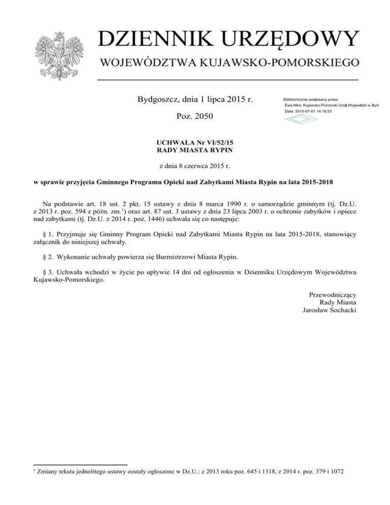 Program Opieki nad Zabytkami Miasta Rypin na lata 2015-2018