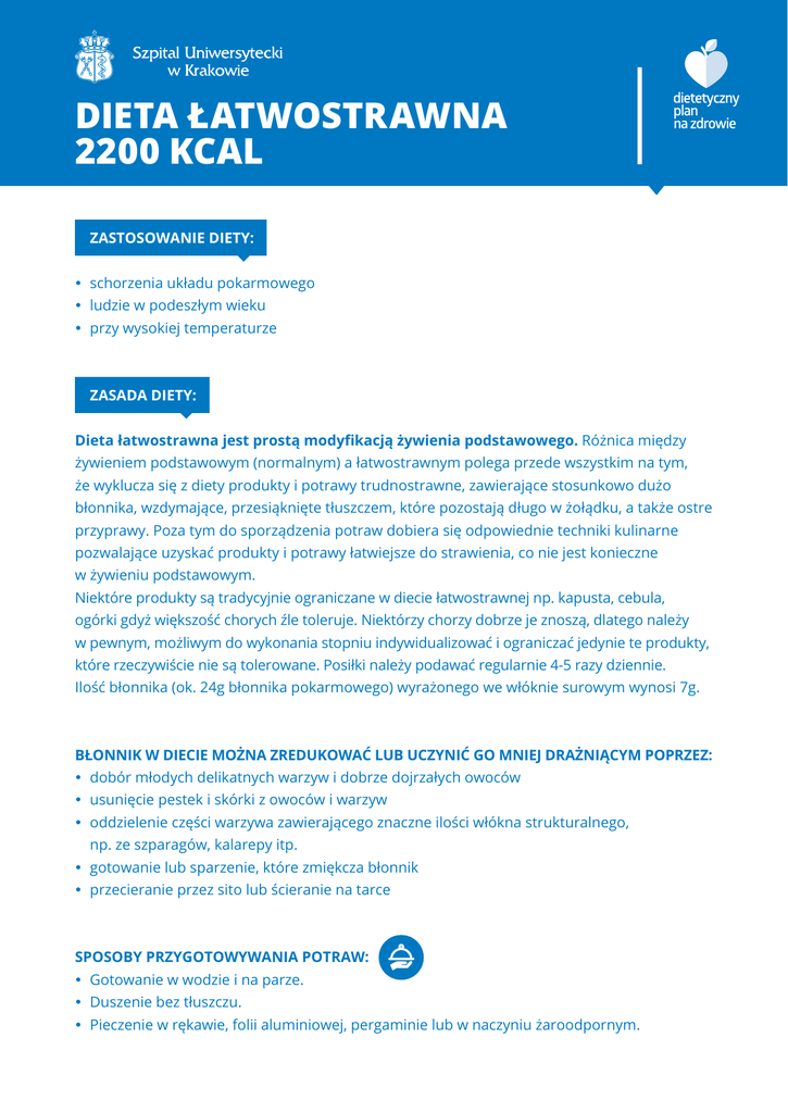 DIETA ŁATWOSTRAWNA 2200 KCAL