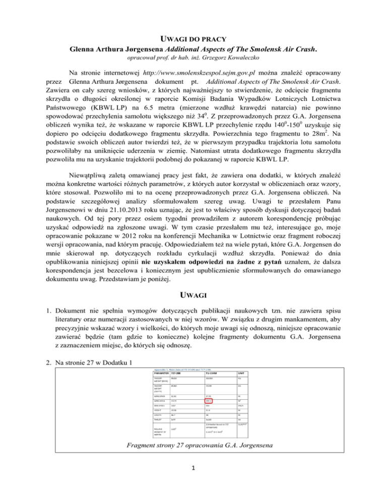 Na stronie 29 G.A. Jorgensen wyliczył (nie rozumiem jak) utraconą siłę nośną