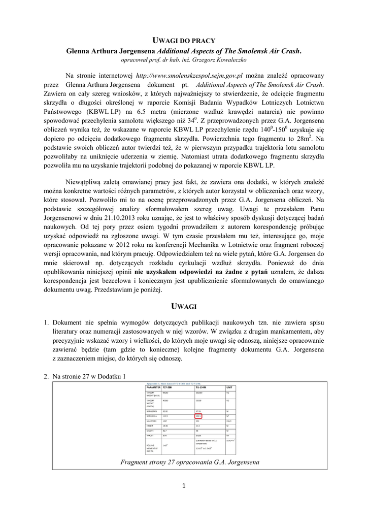 przez Glenna Arthura Jørgensena dokument pt. Additional Aspects of The Smolensk Air Crash.