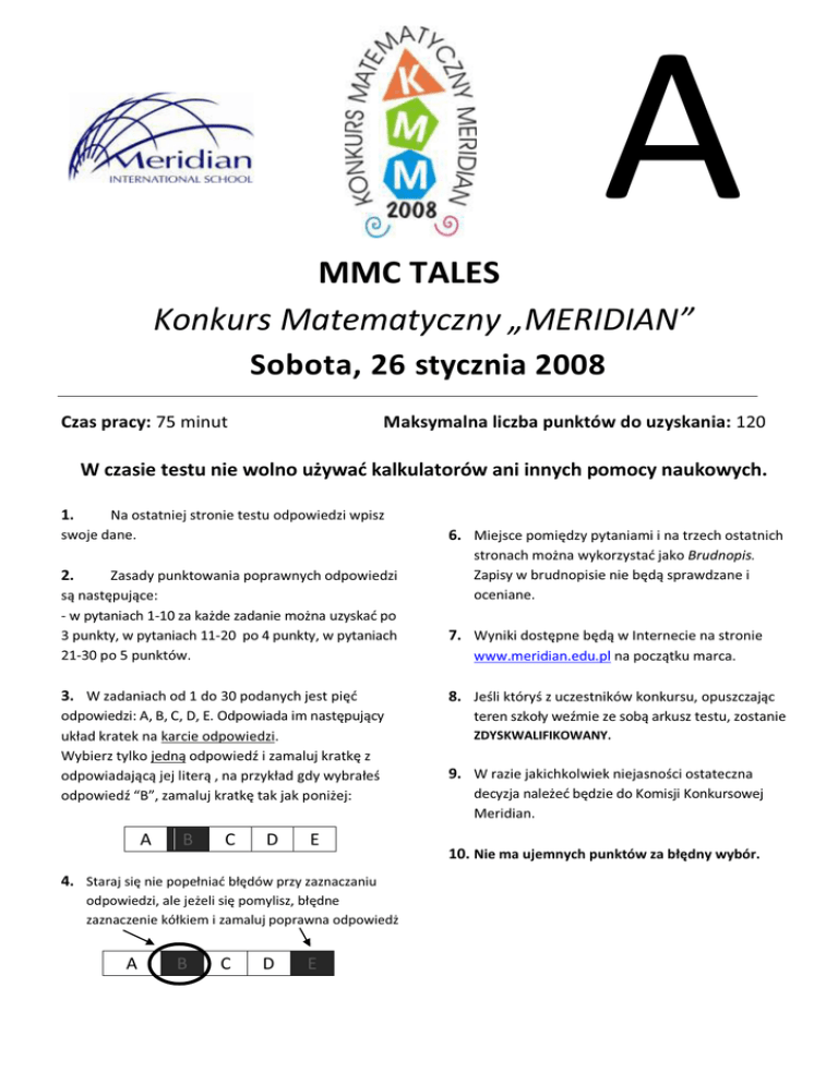 W czasie testu nie wolno używać kalkulatorów ani innych pomocy naukowych.