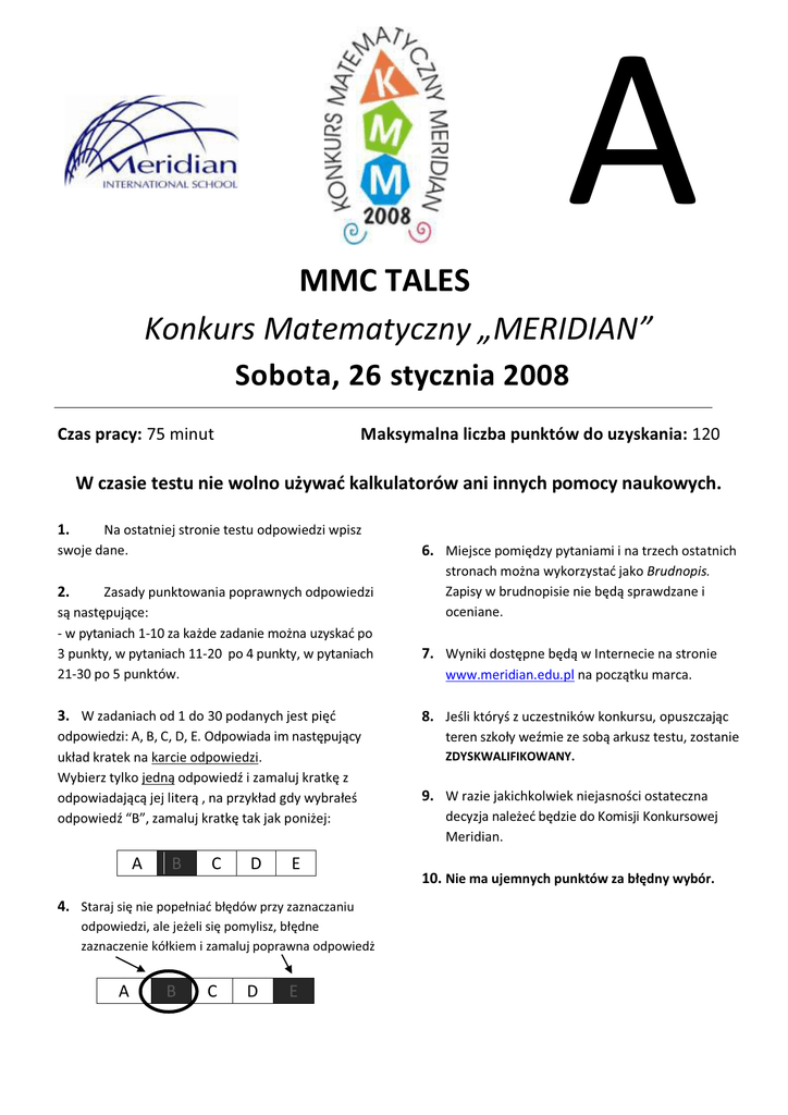 3. W zadaniach od 1 do 30 podanych jest pięć