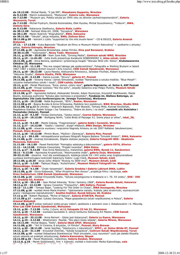 20-22.11.08 - otwarcie ms2 dla zwiedzających, kolekcja sztuki XX i XXI wieku oraz międzynarodowa