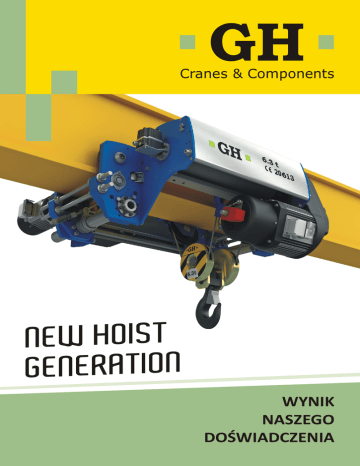 Cranes & Components NEW HOIST GENERATION WYNIK NASZEGO DOŚWIADCZENIA Ponad 50 lat doświadczenia Ponad 100.000 instalacji stanowi podstawę naszego doświadczenia 2 Spis treści Ponad 50 lat doświadczenia... 2 GHB11, nowy wciągnik... 3 Konstrukcja modułowa i na wymiar... Charakteryzuje się bezpieczeństwem i niezawodnością... Firma GH rozpoczęła swoją działalność w 1956 roku od produkcji elementów urządzeń dźwignicowych. Od tego czasu nasze produkty zostały zamontowane w ponad 55 krajach, znajdując zastosowanie w większości branż. Wieloletnie doświadczenie 4/5 i uznanie jakości naszych produktów wśród Klientów uplasowało firmę GH w grupie 6 najważniejszych europejskich producentów sektora urządzeń dźwignicowych. Szeroka gama rozwiązań... 7 Energetycznie efektywny... 8 Tabela wyboru... 9 Serwis techniczny i części zamienne... 10 Nasza obecność na świecie... 11 Zaprojektowaliśmy nowy wciągnik 1956 Czego powinniśmy oczekiwać od nowoczesnego urządzenia? INDUSTRIAS ELECTROMECANICAS GH, S.A. Bezpieczeństwa Niezawodności Wydajności Trwałości Konserwacji 1960 3 1980 Falownik jazdy i podnoszenia w standardzie. Grupa natężenia pracy minimum M5 w standardzie. 1990 Konstrukcja w kształcie litery C, zapewniająca największy zakres pracy. Zredukowana waga, przenosząca tym samym mniejsze naciski na konstrukcję. 2012 2000 Zgodność z normą bezpieczeństwa wg Europejskiej Dyrektywy Maszynowej 2006/42/CE. Konstrukcja zwiększająca wydajność i minimalizująca zakres konserwacji. Szybkozłącza w silnikach i szafach elektrycznych. Wciągnik modułowy i na wymiar Konstrukcja modułowa, dopasowywana na wymiar dla różnych przełożeń i szerokości dźwigara 4 Konstrukcja modułowa nowego w c i ą g n i k a G H B 11 p o z w a l a stosować zamiennie komponenty, w celu konfiguracji różnego rodzaju wciągników, zarówno jeśli chodzi o dostosowanie przełożenia (4/1, 2/1, 4/2 itd.), długości bębna, czy też montaż drugiego silnika. przełożenie 4/1 Taka konstrukcja pozwala firmie GH oferować wciągnik konkurencyjny i wyprodukować go w krótkim czasie. przełożenie 2/1 Wciągnik solidny i niezawodny dla każdego rodzaju produktu Szczególne rozwiązania dla każdej gałęzi przemysłu i środowiska pracy Wciągnik standardowy Elektrownie wiatrowe Hutnictwo Lotnictwo Obróbka metali Odlewnictwo Papiernictwo Prefabrykaty Przemysł budowlany Przemysł kolejowy Przemysł motoryzacyjny Przemysł stoczniowy Spalarnie odpadów Terminale kontenerowe Załadunek stali Załadunek kamienia Żegluga Wciągarka o niskiej zabudowie Produkty jakie oferuje firma GH w poszczególnych sektorach zostały zaprojektowane tak, abyśmy mogli oferować naszym Klientom maksymalne korzyści możliwie najtaniej. Podstawę stanowią niezawodność, bezpieczeństwo, trwałość, cena i minimalna konserwacja. Wciągarka standardowa 5 Kontrola prędkości poprzez falownik, dający większą wydajność 8m/min 25% obciążenia Charakterystyka Bezpieczeństwo Niezawodność Wybór prędkości. Grupa natężenia pracy minimum M5. Płynność ruchów. Kontrola przyspieszania i zwalniania, zapobiegająca niebezpiecznym wahaniom ładunku. Współczynnik bezpieczeństwa liny zgodnie z dyrektywą UE (min 5). Solidna konstrukcja wszystkich elementów. Hamowanie elektryczne, zmieniające hamulec użytkowy w hamulec bezpieczeństwa. Dłuższy czas pracy mechanizmów. 6 5m/min Zwarta konstrukcja, minimalne odległości, które pozwalają w pełni wykorzystać przestrzeń. Podwójny wyłącznik krańcowy podnoszenia. Kontrola wahania obciążenia. Wprowadzenie nowoczesnych materiałów, w celu przedłużenia czasu pracy urządzenia. Kontrola pracy i konserwacji. Konstrukcja modułowa. Zabezpieczenie przed opadaniem ładunku. Mniejsze koszty związane z czasem postoju maszyny. Kontrola Okresu Bezpiecznej Eksploatacji. Czujnik luzowania liny opcjonalny. Zabezpieczenie przed zmianą lub utratą fazy. Mniejsza waga (brak przeciwwagi), zmniejszenie nacisków na konstrukcję. Zabezpieczenie przed przegrzaniem się silników. Oszczędności energetyczne. Ogranicznik udźwigu. Brak przeciwwag Pewne mocowanie ładunku poprzez zabezpieczenie na haku. - Mniejszy moment bezwładności. Silnik, hamulec jazdy - Optymalna konstrukcja GH. - Regulacja prędkości falownikiem. - Napęd bezpośredni na koła. Silnik, hamulec podnoszenia - Optymalna konstrukcja GH. - Zabezpieczenie enkoderem. - Ochrona IP-55 wg DIN 40050. - Względny czas pracy 60% ED. Przekładnia o zębach śrubowych - Cicha praca. - Świetne smarowanie. - Koła zębate w zamkniętym korpusie wypełnionym smarem płynnym. Prowadnica liny - Materiał najnowszej generacji. - Mniejsze zużycie liny, a tym samy wydłużony czas pracy. Dłuższy czas pracy komponentów urządzenia. Mniejsze koszty konserwacji w czasie użytkowania mechanizmu podnoszenia. 595 mm 320 mm Kontrola obciążenia Rodzaje wciągników Wszystkie wciągniki wyposażone są w elektroniczny ogranicznik udźwigu model ALE-100/TN, który posiada funkcje zapisywania i kontroli. Został zaprojektowany, aby kontrolować przeciążenia, luzowanie liny i wzrost temperatury silnika. Wykorzystywany także po to, aby zapamiętywać spektrum obciążeń mechanizmu podnoszenia (wciągników) zgodnie z normą UNE 58 919. Cechy naszych produktów dobierane są w taki sposób, aby spełnić oczekiwania naszych Klientów. W połączeniu z czujnikiem przeciążenia pozwala opcjonalnie na wizualizację podwieszonego ładunku, a także na kontrolę Okresu Bezpiecznej Eksploatacji: - Ilość operacji podnoszenia. - Ilość operacji podnoszenia załączanych impulsowo. - Wciągnik do jazdy po łuku. - Wciągarka boczna. - Wciągnik z wózkiem konsolowym. - Wciągarka obrotowa. - Wciągarka z dwoma wciągnikami. - Wciągarka z podwójnym hakiem. - Wciągarka ustawiona równolegle do czołownic. - Wciągarka o niskiej zabudowie z podestem. - Wciągarka ze zwijakiem kablowym. - Wciągarka 