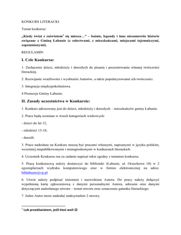 Regulamin konkursu - Biblioteka Publiczna Gminy Łabunie