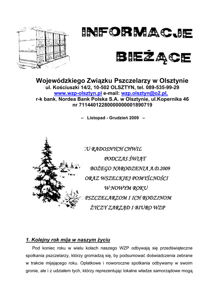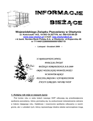 Listopad - Grudzień 2009 - Wojewódzki Związek Pszczelarzy w
