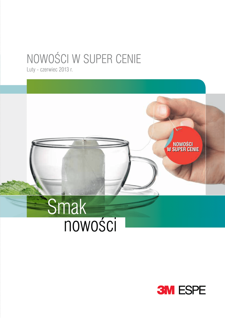 NOWOŚCI W SUPER CENIE Luty - czerwiec 2013 r. Nowości w super cenie Smak nowości R elyX Ultimate Clicker TM TM Adhezyjny cement kompozytowy RelyX TM Ultimate jest innowacyjnym cementem adhezyjnym o podwójnym mechanizmie wiązania. Cement został stworzony, aby spełnić oczekiwania estetyczne lekarzy podczas cementowania prac z ceramiki szklanej. Uproszczona procedura cementowania zapewnia najwyższą siłę łączenia. Wskazania: • pełnoceramiczne, kompozytowe lub metalowe wkłady, nakłady, korony, mosty • 2-3 punktowe mosty typu Maryland • 3 punktowe mosty oparte na wkładach lub nakładach • pełnoceramiczne lub kompozytowe licówki • pełnoceramiczne, kompozytowe lub metalowe odbudowy do łączników implantów • wkłady i śruby Sugerowana cena sprzedaży brutto PLN RelyX TM Ultimate Clicker TM Zestaw próbny (A1) 1 butelka Single Bond Universal 1 strzykawka wytrawiacza 25 jednorazowych końcówek do strzykawki wytrawiacza 50 jednorazowych microbrushes 1 RelyX TM Ultimate Clicker TM (A1) x 4,5 g 1 bloczek do mieszania Nowość w super cenie RelyX TM Ultimate Clicker TM - uzupełnienia GRatis 410 Sugerowana cena sprzedaży brutto PLN Odcień Translucent: 1 RelyX TM Ultimate Clicker TM x 4.5 g Odcień B0.5 Bleach: 1 RelyX TM Ultimate Clicker TM x 4.5 g Odcień A1: 1 RelyX Ultimate Clicker x 4.5 g TM TM 285 Nowość w super cenie Odcień A3 Opaque: 1 RelyX TM Ultimate Clicker TM x 4.5 g RelyX TM Ultimate Clicker TM pasty próbne - uzupełnienia Sugerowana cena sprzedaży brutto PLN Odcień Translucent: 1 pasta próbna w odcieniu Translucent x 2 g Odcień B0.5 Bleach: 1 pasta próbna w odcieniu B0.5/White x 2 g Odcień A1: 1 pasta próbna w odcieniu A1/Light Yellow x 2 g Odcień A3 Opaque: 1 pasta próbna w odcieniu A3 Opaque/Yellow Opaque x 2 g 109 Nowość w super cenie Zgrany duet - RelyX Ultimate i Single Bond Universal. TM Adhezyjny cement kompozytowy RelyX TM Ultimate i system łączący Single Bond Universal to najprostsza procedura cementowania wśród adhezyjnych cementów kompozytowych. Wykorzystanie tych produktów do cementowania to oszczędność czasu, łatwe wykonanie oraz mniejsze ryzyko popełnienia błędów w procedurze. Single Bond Universal to system łączący do całkowitego i selektywnego wytrawiania, a także wykorzystywany jest jako primer. RelyX TM Ultimate jest idealnie dopasowany do właściwości systemu łączącego Single Bond Universal i dzięki specjalnemu aktywatorowi pozwala na aktywację Single Bond Universalu bez potrzeby wcześniejszego naświetlania. Korzyści ze stosowania RelyX TM Ultimate Clicker TM: Korzyści ze stosowania Single Bond Universal Adhesive: • podwójnie wiążący cement z niezwykłą siłą wiązania • idealny do techniki całkowitego wytrawiania i selektywnego wytrawiania • prosta procedura tylko cement i jednobutelkowy system łączący • idealny jako primer dla prac pełnoceramicznych, z ceramiki szklanej i metalu • doskonała estetyka wysoka szczelność brzeżna, odporność na ścieranie i naturalna fluorescencja • taka sama siła łączenia zarówno do wilgotnej, jak i wysuszonej zębiny • oszczędność materiału dzięki podajnikowi typu Clicker TM • nie powoduje nadwrażliwości podczas całkowitego lub selektywnego wytrawiania Ketac Cem Plus TM Pierwszy cement glasjonomerowy modyfikowany żywicą z możliwością krótkiej polimeryzacji 3M ESPE prezentuje pierwszy i jedyny cement glasjonomerowy modyfikowany żywicą z możliwością krótkiej polimeryzacji. W zaledwie 5 sekund cement Ketac TM Cem Plus osiąga stan żelowy i nadmiar cementu może być łatwo usunięty. • pierścieni ortodontycznych • u zupełnień ceramicznych opartych na podbudowie z tlenku glinu lub tlenku cyrkonu • uzupełnień na łącznikach implantologicznych ó • metalowych koron, mostów, wkładów, nakładów kr • wkładów koronowo-korzeniowych metalowych a polim Cement Ketac TM Cem Plus jest rekomendowany do cementowania: tk Wskazania: er yz acja Imponująca precyzja i idealna odwzorowanie Nowość w super cenie 3M ESPE Monophase/3M ESPE Soft Monophase to nowa masa polieterowa, która dzięki jasnej barwie pozwala na doskonałe odwzorowanie każdego szczegółu TM TM TM TM Cechy: naturalna hydrofilność to precyzyjne wyciski doskonałe zapływanie to idealne odwzorowanie detali unikalna właściwość „snap-set” to idealny efekt wiązania masy Wskazania: • wyciski pod wkłady i nakłady • wyciski pod korony i mosty • wyciski pod implanty • wyciski przy bezzębiu 3M ESPE Monophase Sugerowana cena sprzedaży brutto PLN 3M ESPE Soft Monophase Sugerowana cena sprzedaży brutto PLN 3M ESPE Monophase - uzupełnienie 1 pasta bazowa Monophase x 300 ml 1 pasta katalizatora Monophase x 60 ml 240 3M ESPE Soft Monophase - uzupełnienie 1 pasta bazowa Monophase x 300 ml 1 pasta katalizatora Monophase x 60 ml 240 Z estaw wprowadzający do mieszalnika Pentamix TM 2: 1 pasta bazowa x 300 ml 1 pasta katalizatora x 60 ml 1 pojemnik do 3M ESPE Monophase 10 końcówek mieszających Penta TM 1 strzykawka do elastomerów typu Penta TM 1 klej do łyżek Z estaw wprowadzający do mieszalnika Pentamix TM 3: 1 pasta bazowa 300 ml 1 pasta katalizatora 60 ml 1 pojemnik do 3M ESPE Monophase 10 końcówek mieszających Penta TM 1 strzykawka do elastomerów typu Penta TM 1 klej do łyżek 545 Zestaw wprowadzający do mieszalnika Pentamix TM 2: 1 pasta bazowa x 300 ml 1 pasta katalizatora x 60 ml 1 pojemnik do 3M ESPE Monophase 10 końcówek mieszających Penta TM 1 strzykawka do elastomerów typu Penta TM 1 klej do łyżek Zestaw wprowadzający do mieszalnika Pentamix TM 3: 1 pasta bazowa 300 ml 1 pasta katalizatora 60 ml 1 pojemnik do 3M ESPE Monophase 10 końcówek mieszających Penta TM 1 strzykawka do elastomerów typu Penta TM 1 klej do łyżek 545 *Promocja nie łączy się z innymi promocjami 3M ESPE. Promocja ważna w okresie 1 lutego – 30 czerwca 2013 r. lub do wyczerpania zapasów. Realizacja promocji u 