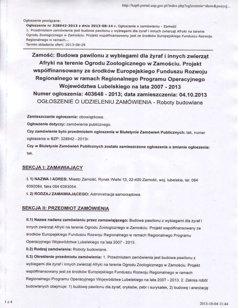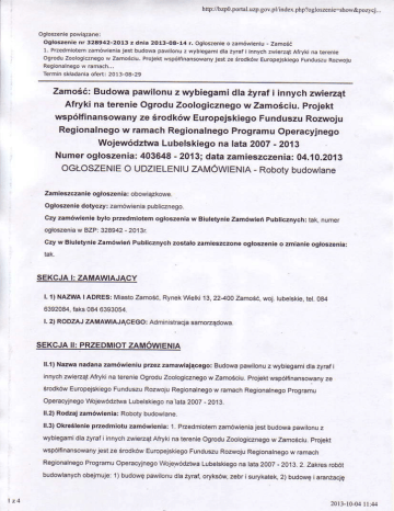 Ogłoszenie o udzieleniu zamówienia nr 403648-2013