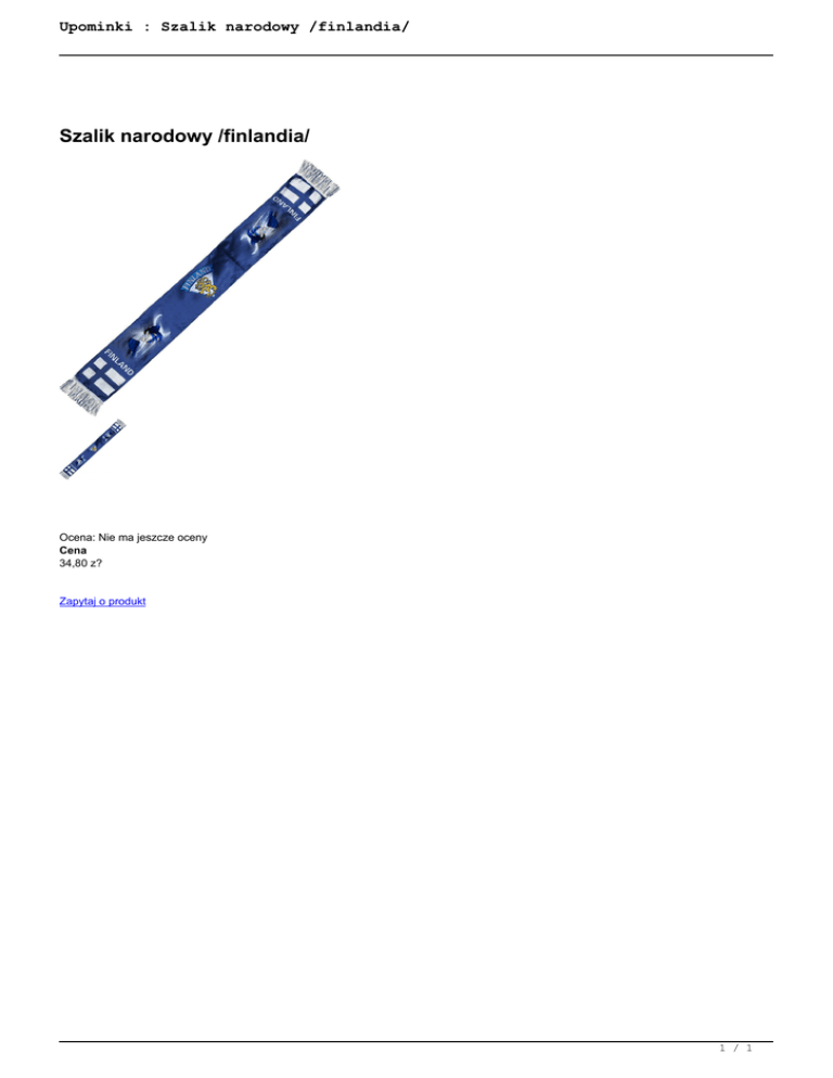 Upominki : Szalik narodowy /finlandia/ Szalik narodowy /finlandia/ Ocena: Nie ma jeszcze oceny Cena 34,80 z? Zapytaj o produkt 1 / 1 Powered by TCPDF (www.tcpdf.org)