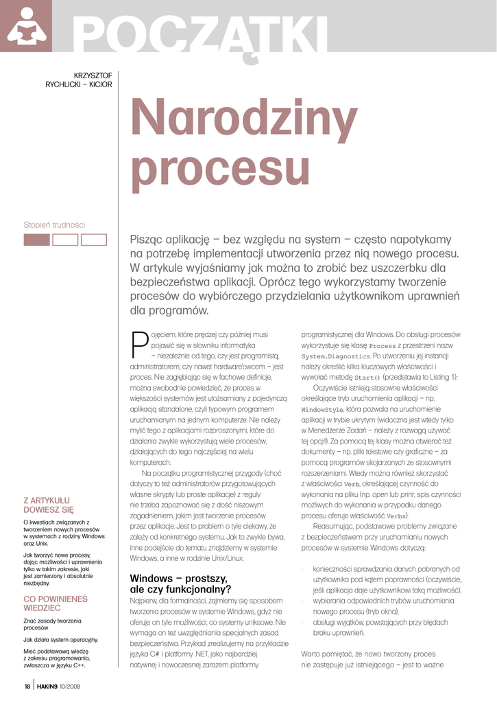 TWORZENIE PROCESÓW A BEZPIECZEŃSTWO