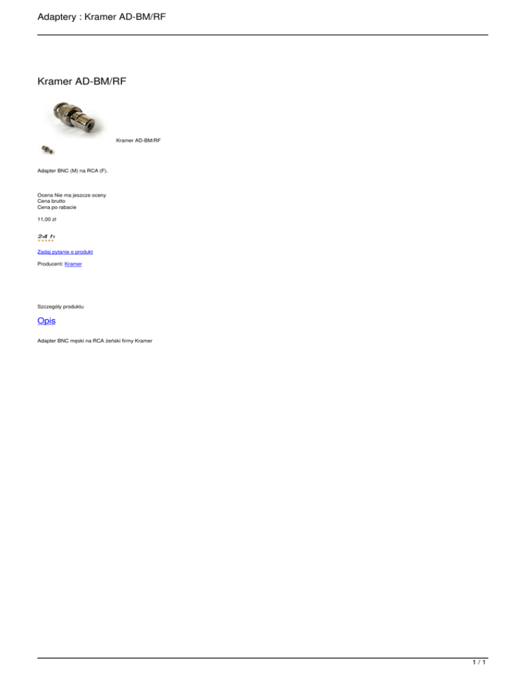Adaptery : Kramer AD-BM/RF Kramer AD-BM/RF Kramer AD-BM/RF Adapter BNC (M) na RCA (F). Ocena Nie ma jeszcze oceny Cena brutto Cena po rabacie 11,00 zł Zadaj pytanie o produkt Producent: Kramer Szczegóły produktu Opis Adapter BNC męski na RCA żeński firmy Kramer 1/1 Powered by TCPDF (www.tcpdf.org)