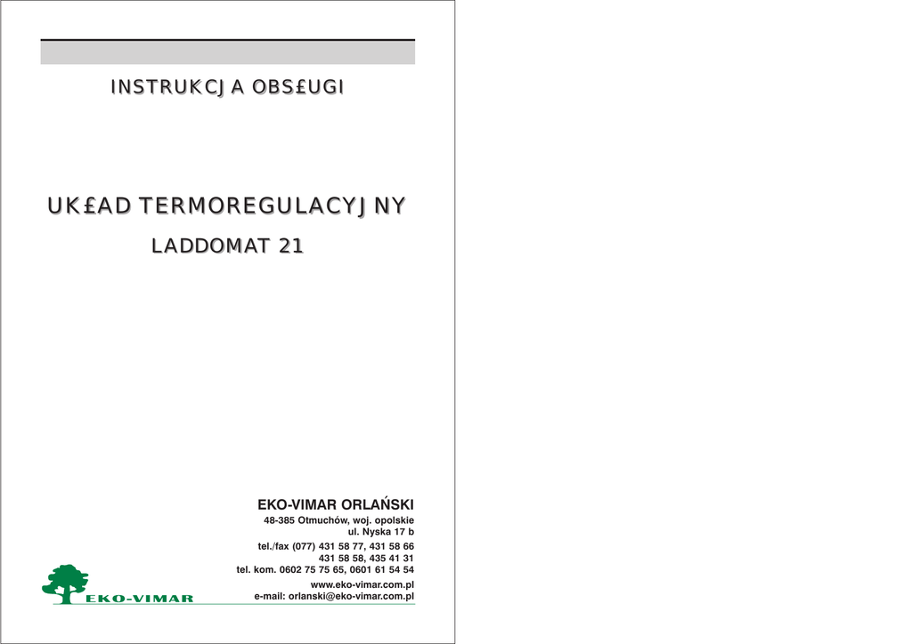 INSTRUKCJA OBS£UGI UK£AD TERMOREGULACYJNY LADDOMAT 21 EKO-VIMAR ORLAŃSKI 48-385 Otmuchów, woj. opolskie ul. Nyska 17 b tel./fax (077) 431 58 77, 431 58 66 431 58 58, 435 41 31 tel. kom. 0602 75 75 65, 0601 61 54 54 www.eko-vimar.com.pl e-mail: [email protected] 1. OPIS TECHNICZNY „Laddomat 21” jest układem sterującym i regulującym przepływ wody w układzie c.o. Wykonany jest w formie odlewu z materiałów odpornych na szkodliwe działanie czynników obiegowych (woda, olej, emulsja itp.). Podstawowe elementy układu to: 1. Pompa obiegowa „Wilo RS 25-6-3”, 2. Wskaźnik temperatury wody powrotnej z instalacji, 3. Wskaźnik temperatury wody na wyjściu z kotła, 4. Wskaźnik temperatury wody mieszanej, 5. Zawór kulowy 1 1" IG, 6. Zawór termostatyczny, 7. Zawór automatyczny do regulacji obiegu grawitacyjnego, 8. Kolektor osadu, 9. Wyjście do napełniania. 2 3 Zaletą układu „Laddomat 21” jest jego konstrukcja, która zastępuje klasyczne podłączenia z pojedynczych elementów. Odpowiednie elementy zapewniają wydajna pracę kotła w pełnym zakresie obciążenia. „Laddomat 21” ma za zadanie: – Zapewnienie w krótkim czasie po rozpaleniu kotła odpowiedniej temperatury pracy kotła, – Regulację procesu ładowania zbiorników akumulacyjnych poprzez przepływ gorącej wody. Prędkość przepływu musi być dostatecznie niska, aby zapewnić optymalną różnicę temperatur w warstwie granicznej pomiędzy ciepłą i zimną wodą, – Przekazanie nadmiaru ciepła z kotła do zbiornika akumulacyjnego po zakończeniu dostarczania ciepła do ogrzewania obiektu, – Przekazanie ciepła z kotła do zbiornika podczas obiegu naturalnego (w przypadku przerwy w dostawie energii elektrycznej i zatrzymania pompy obiegowej). „Laddomat 21” zapewnia odpowiedni rozdział czynnika obiegowego w poszczególnych etapach pracy kotła. Odpowiednie sterowanie rozdziałem czynnika obiegowego zmniejsza straty ciepła do otoczenia a także ,co jest bardzo ważne, redukuje emisję do otoczenia szkodliwych substancji takich jak np. WWA – wielopierścieniowe węglowodory aromatyczne. 2. ZASADA DZIAŁANIA Układ „Laddomat 21” działa skutecznie w trakcie wszystkich etapów pracy kotła. Podczas rozpalania układ ma za zadanie jak najszybsze nagrzanie kotła do jego temperatury roboczej, która wynosi 85°C. Termostat, który otwiera się dopiero przy temperaturze powyżej 78°C (przy większym obciążeniu jako opcję można umieścić termostat o temperaturze otwarcia 83 lub 88°C) zapewnia krążenie czynnika grzewczego w „małym obiegu kotła”. Szybkie nagrzewanie przestrzeni wodnej kotła umożliwia pompa obiegowa. Zapewnia to wyrównanie profilu temperatury w kotle. Poniżej temperatury otwarcia termostatu przepływ wody do obiegu zewnętrznego jest niemożliwy dzięki ciśnieniu wody wytwarzanemu przez pompę obiegową. Gdy temperatura wody w „małym obiegu kotłowym” osiągnie temperaturę operacyjną pracy kotła, termoregulator zaczyna otwierać zawór. To pozwala części wody zimnej (z obiegu zewnętrznego) „wejść” do obiegu kotłowego. 4 5 W fazie końcowej, kiedy zbiornik akumulacyjny jest już w pełni naładowany, temperatura wody powrotnej jest równa temperaturze wody na wyjściu z kotła. Jest to etap pełnego otwarcia zaworu, podczas którego przerwany jest proces mieszania czynnika grzewczego. Jest to bardzo ważne bo sygnalizuje pełne naładowanie zbiorników. Zmieszana woda zasilająca kocioł ma temperaturę około 70°C. W trakcie wzrostu temperatury w kotle wzrasta również temperatura wody na wyjściu z kotła. Stopień otwarcia termostatu wzrasta – to pozwala coraz to większej ilości wody zimnej mieszać się w obiegu kotła. Woda na wyjściu z kotła, o temperaturze 90°C jest mieszana przez układ „Laddomat 21” i o temperaturze ok. 66°C dopływa do kotła. 6 W przypadkach, gdy przepływ wody z zasilania kotła przez zawór regulacyjnynie został kompletnie przerwany, kocioł zostanie wyłączony, żeby uni7 knąć zagotowania się wody w kotle. Oznacza to także, że dalszy proces ładowania zakończył się zbyt wcześnie. W przypadku przerwy w dostawie prądu lub awarii pompy wewnętrzny zawór awaryjny otwiera się i zapewnia naturalną cyrkulację pomiędzy kotłem a zbiornikami akumulacyjnymi. Dzięki temu unika się ryzyka zagotowania wody w kotle i uszkodzenia kotła (pod warunkiem, że zbiornik nie jest w pełni naładowany). 3. INSTALACJA I REGULACJA Układ „Laddomat 21” ze względu na małe wymiary zapewnia łatwą instalację. Musi być podłączany w pozycji pionowej (schemat połączenia jak na rysunku nr 2). Średnica przyłączy wynosi 1 1" IG. W zależności od mocy kotła średnica rurek w pętli obiegu kotła powinna wynosić: Moc kot³a Œrednica wewnêtrzna rur [kW] [mm] do 35 25 35-60 32 60-80 40 Stosowanie rur o ww średnicach zapewnia przepływ o małej prędkości i wyklucza możliwość powstania w kotle powietrza. W celu wyeliminowania ewentualnych kieszeni powietrza, rurki należy poprowadzić jak najkrótszą drogą z minimalną ilością zagięć. Obecność powietrza w systemie c.o. jest najczęstszą przyczyną zastopowania cyrkulacji czynnika. Prosty układ rurek połączeniowych jak ten pokazany na rysunku, automatycznie eliminuje powietrze z systemu. Podłączenie Loddomatu 21 - patrz strona następna 8 9 1. 2. 3. 4. 5. 6. Naczynie wzbiorcze Grzejnik Termostat kominowy C.W.U. Zbiornik Kocioł Inną alternatywą jest sterowanie pracą pompy dzięki termostatowi zamontowanemu w przewodzie dymowym. Termostat reaguje po przekroczeniu temperatury spalin ok. 100°C. Kiedy temperatura po wypaleniu wsadu opadnie i przewód dymowy się ochłodzi, termostat wyłączy pompę obiegową. UWAGA! Termostat nie jest częścią dostawy układu „Laddomat 21”. Pompę obiegową można włączać i wyłączać ręcznie. Jednak aby uniknąć niewygód i straty czasu związanych z kontrolowaniem procesu spalani