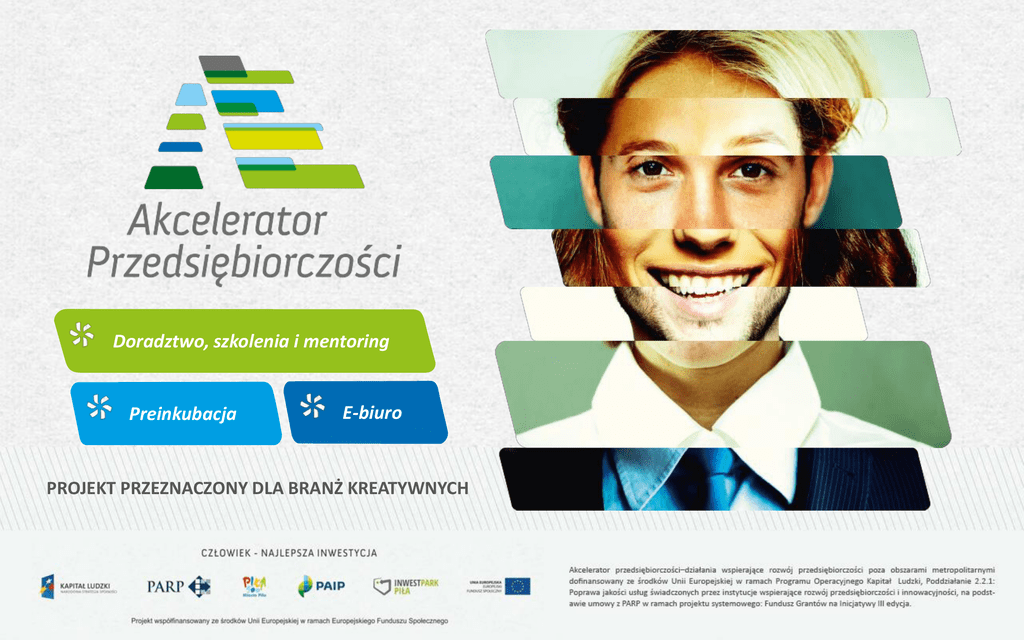 Doradztwo, szkolenia i mentoring Preinkubacja E-biuro PROJEKT PRZEZNACZONY DLA BRANŻ KREATYWNYCH Infomracje o projekcie Projekt Finansowanie Projekt dofinansowany ze środków Unii Europejskiej w ramach Programu Operacyjnego Kapitał Ludzki, Poddziałanie 2.2.1: Poprawa jakości usług świadczonych przez instytucje wspierające rozwój przedsiębiorczości i innowacyjności, na podstawie umowy z PARP w ramach projektu systemowego: Fundusz Grantów na Inicjatywy III edycja Grupa docelowa Branże Działania kierowane do uczestników projektu — Szkolenia — Mentoring Doradztwo Preinkubacja — Wirtualne biuro — Szkolenia Dla początkujących Dla zaawansowanych Prawa autorskie Finanse Design i jego znaczenie w sprzedaży produktów Zamówienia Kojarzenie potencjalnych partnerów biznesowych Innowacje Możliwość pozyskania środków na działalność Marketing Prowadzenie i zakładanie firmy w przemysłach kreatywnych Księgowe i podatkowe aspekty branż kreatywnych Mentoring Mentor Mentor to osoba, która - korzystając z posiadanego wykształcenia, umiejętności i praktycznej wiedzy - udziela rad, wskazówek i informacji zwrotnej o pracy podopiecznego. Jego zadanie polega na wspomaganiu rozwijania i odkrywania potencjału ucznia, motywowaniu go do pracy, wskazywaniu jego mocnych i słabych stron, realnej ocenie szans oraz wypracowaniu celów. Preinkubacja Usługa umożliwia uczestnikom projektu przetestowanie wyników swoich prac i projektów na rynku. Efekt preinkubacji to nowo powstałe firmy o wysokim potencjale innowacyjności, oparte na know-how pomysłodawcy, przyczyniające się do podniesienia poziomu innowacyjności w regionie. Uczestniczy w szkoleniach Nie musi prowadzić księgowości ani biura Korzysta z pomocy prawnej Korzysta z innowacyjnego subkonta PREINKUBOWANY Nie musi rejestrować działalności Zarabia własne pieniądze Zdobywa praktyczne doświadczenie Korzysta ze wsparcia doradcy, mentora i opiekuna Pracuje, kiedy chce i nie ma szefa Wirtualne biuro Wirtualne biuro to: Wirtualny adres Wirtualny sekretariat Rzeczywiste biuro Promocja rezultatów projektu Działania upowszechniające oraz mainstreamingowe skierowano do przedstawicieli instytucji otoczenia biznesu, którzy wspierają osoby chcące założyć własną działalność gospodarczą oraz przedsiębiorców, a także do przedstawicieli jednostek samorządu terytorialnego, z założenia zainteresowanych rozwojem przedsiębiorczości. Udział w eventach, konferencjach Spotkania indywidualne, konsultacje Spotkania środowiskowe Organizacja wystawy Promującej oraz konferencji Podsumowującej projekt Podsumowanie 200 os. Beneficjenci 150 os. Szkolenia i doradztwo 10 umów Wirtualne biuro 16 os. Preinkubowani Doradztwo, szkolenia i mentoring Preinkubacja Dziękujemy! E-biuro