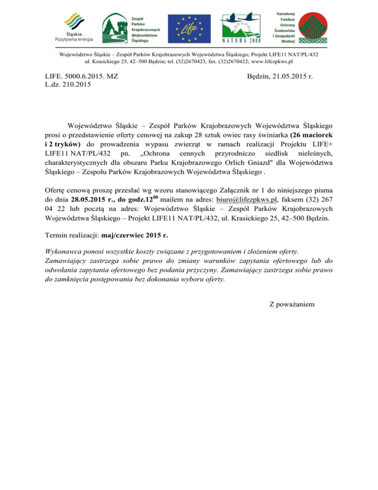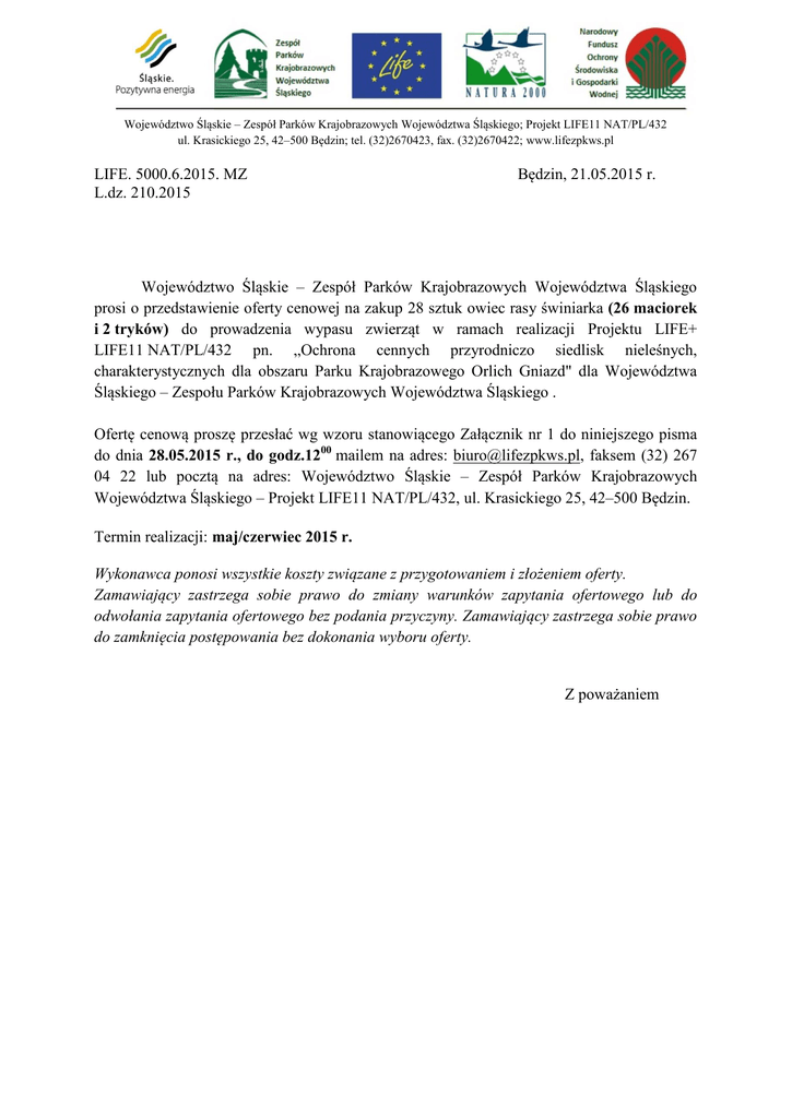 LIFE. 5000.6.2015. MZ Będzin, 21.05.2015 r. L.dz. 210.2015